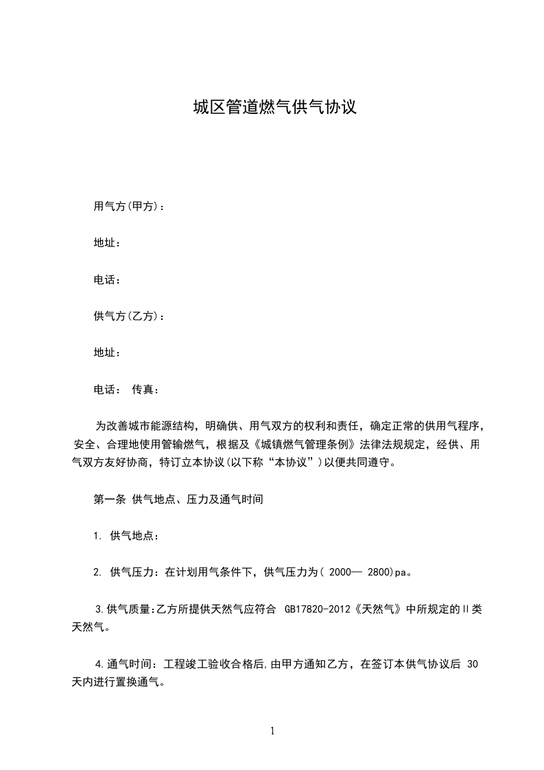 2、甲方应选用符合国家安全规范及质量规定的燃气器具。