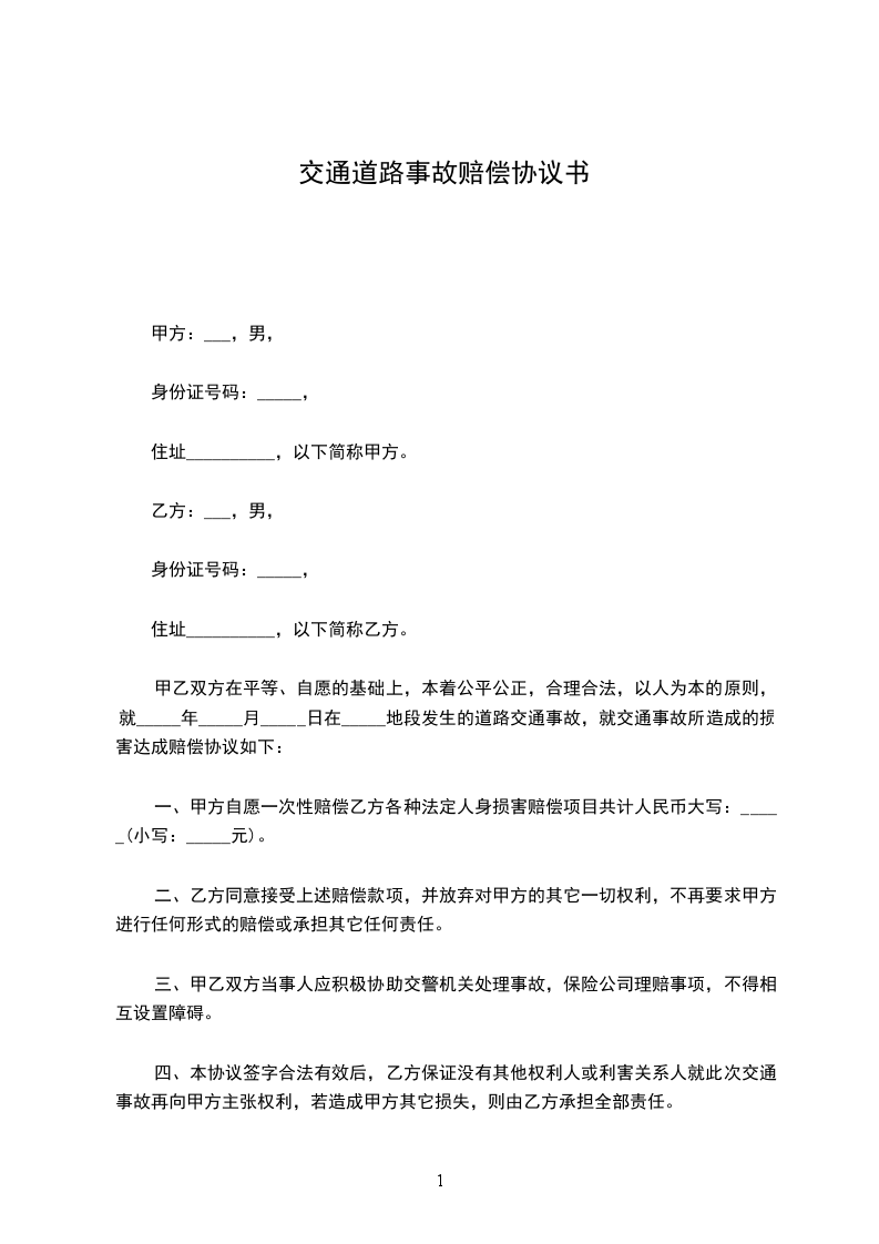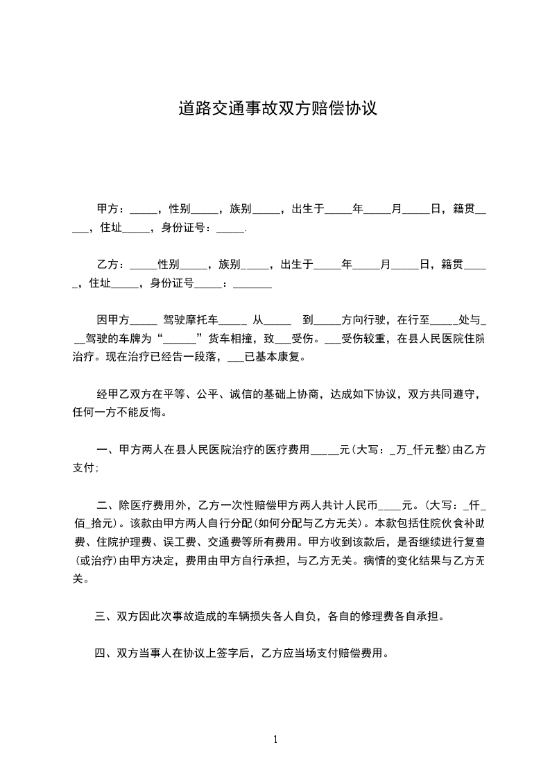 四、本协议所涉及的赔偿是一次性终结赔偿。