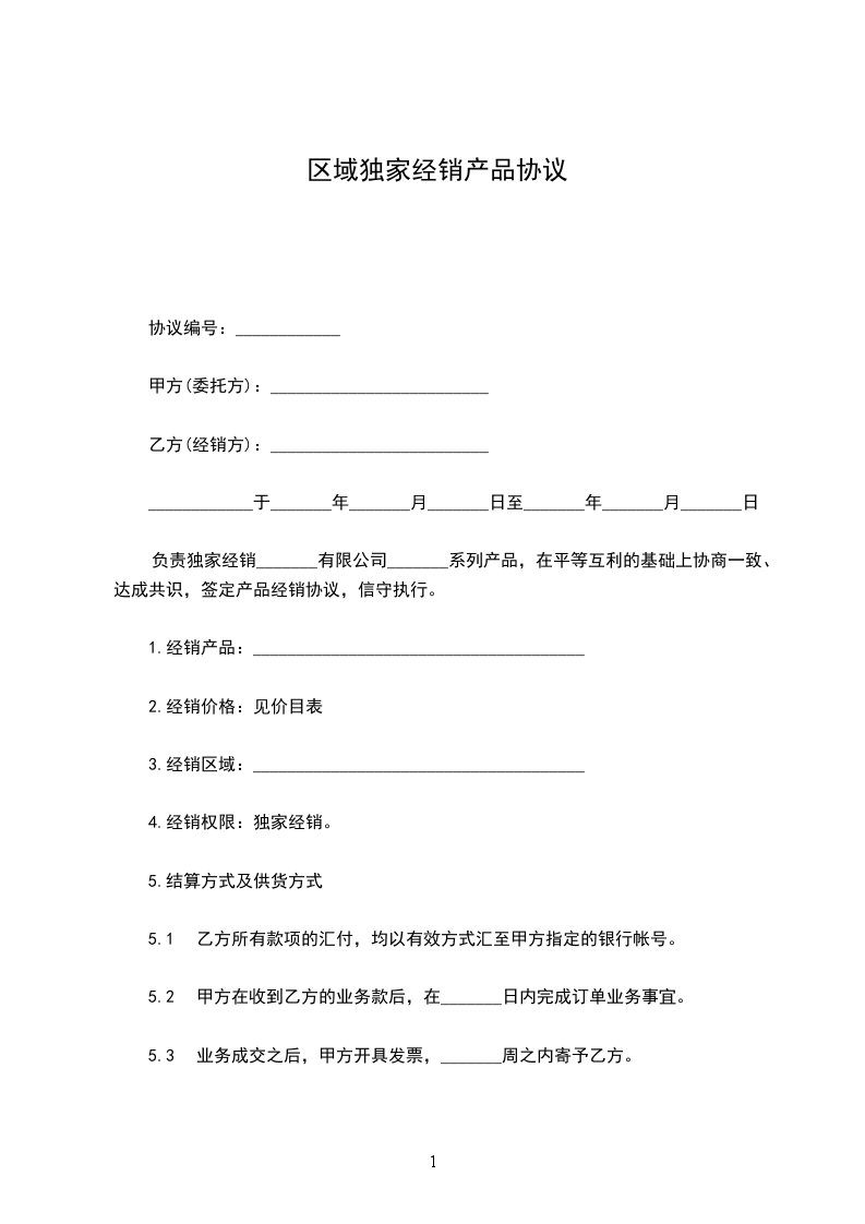 10.1 必须努力推广甲方产品,禁止将货销至甲方其他经销商经销区域。