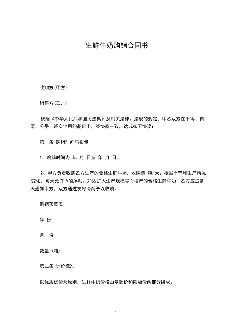 2、甲方到乙方指定地点收购生鲜牛奶,时间为每天 时至 时,甲方应按时收购。