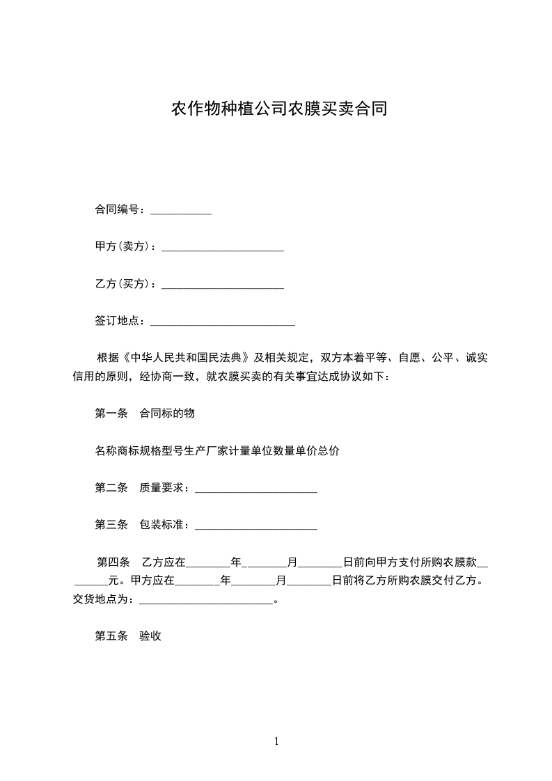 根据《中华人民共和国民法典》及相关规定,双方本着平等、自愿、公平、诚实信用的原则,经协商一致,就农膜买卖的有关事宜达成协议如下: