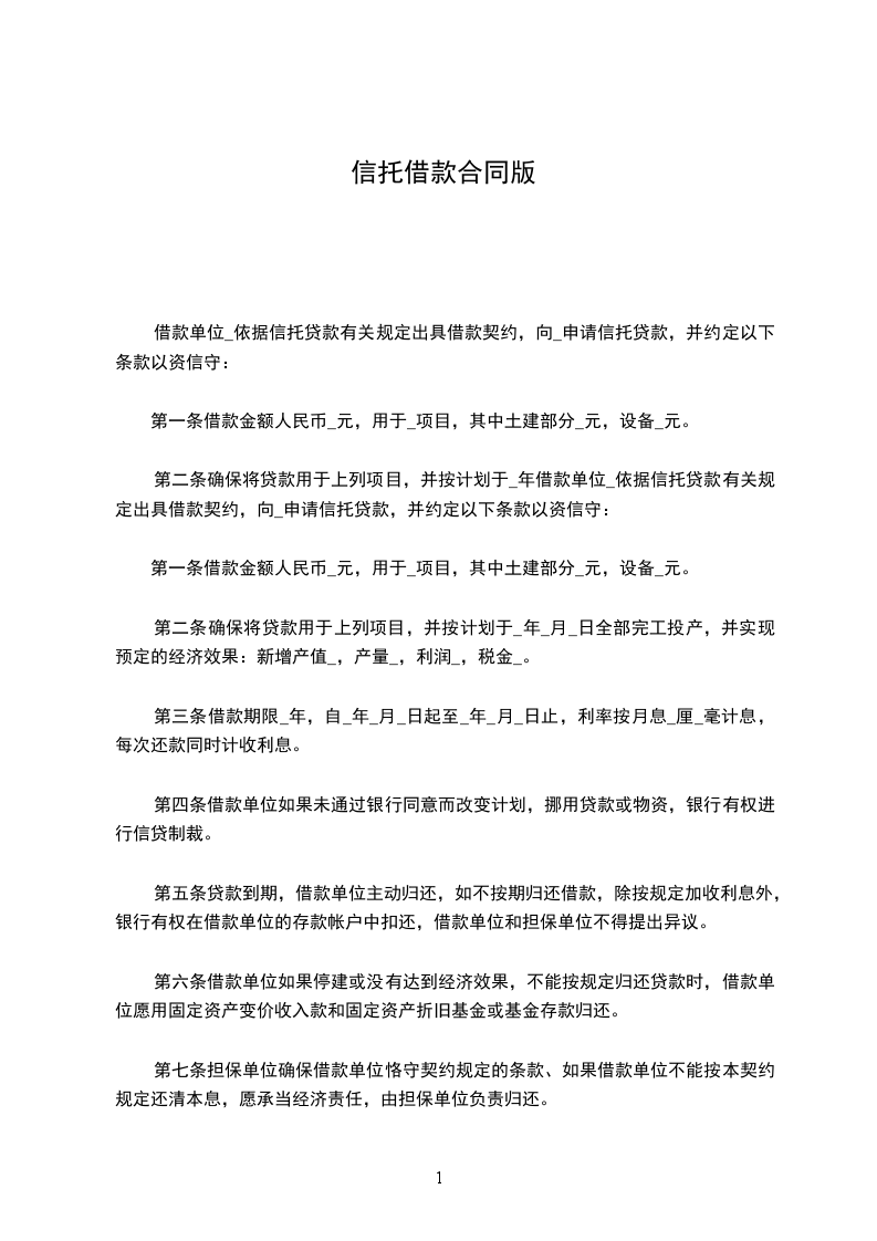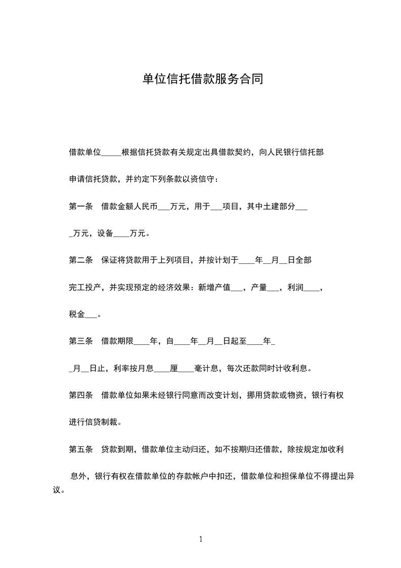 借款单位_____根据信托贷款有关规定出具借款契约,向人民银行信托部