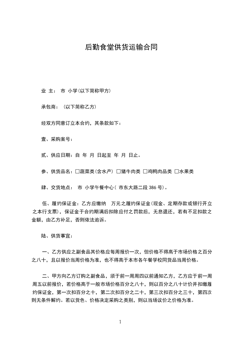 四、乙方每日上午七时至七时三十分前或甲方约定时间前,将货品运送至甲方厨房以凭验收,并按日送货;交货当日乙方若遇突发变故,仍应正常交货,且不可擅自变更货品及时间。