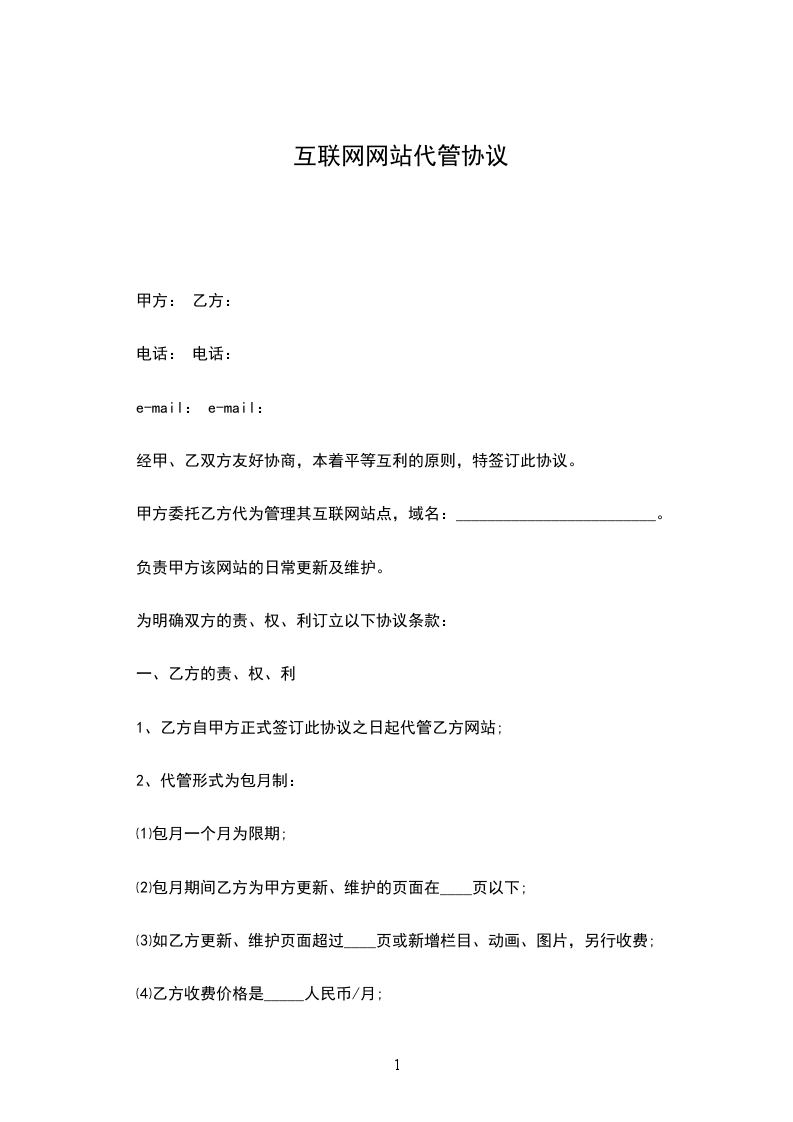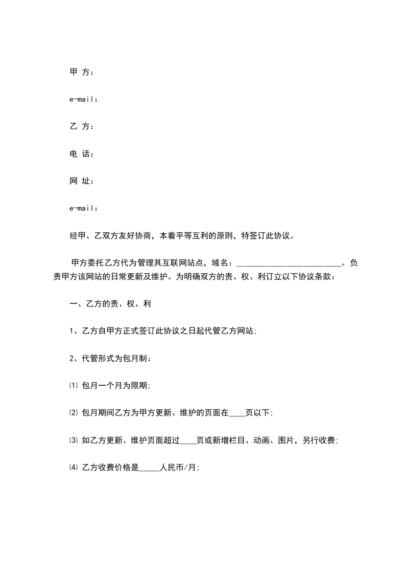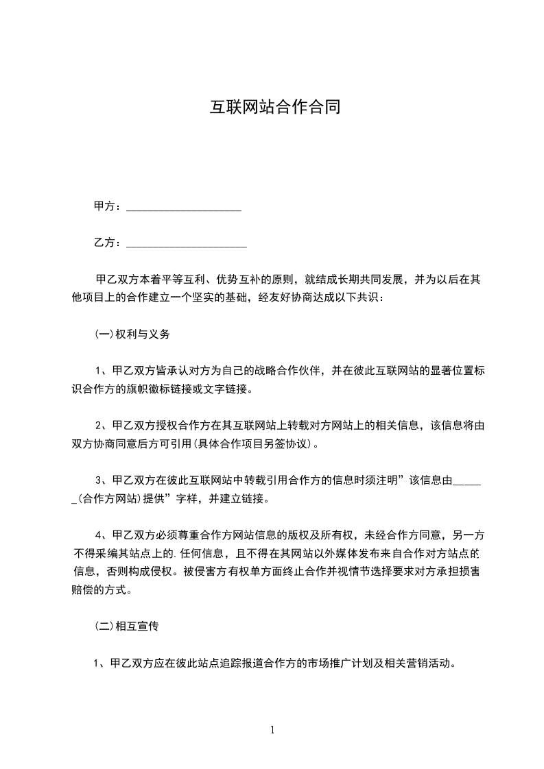 3._________网仅作为信息提供商,并提供网上洽谈及交易的场所,但对双方的具体交易及在交易中的利益关系不负任何责任。