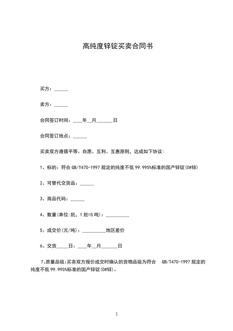 7、质量品级:买卖双方报价成交时确认的货物品级为符合GB/T470-1997规定的纯度不低于99.995%标准的国产锌锭(0#锌)。