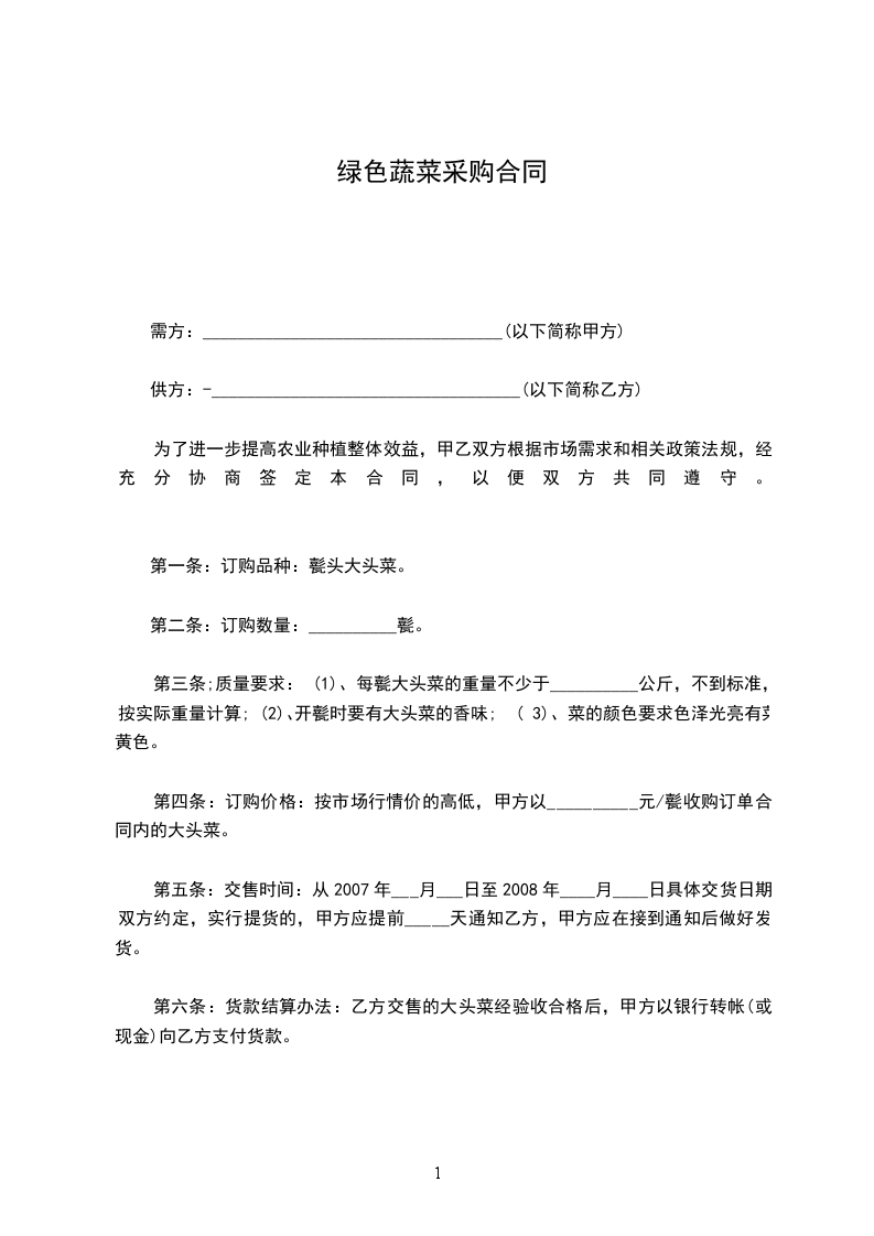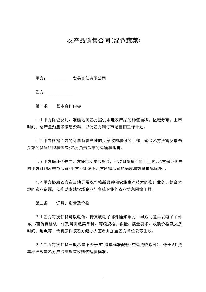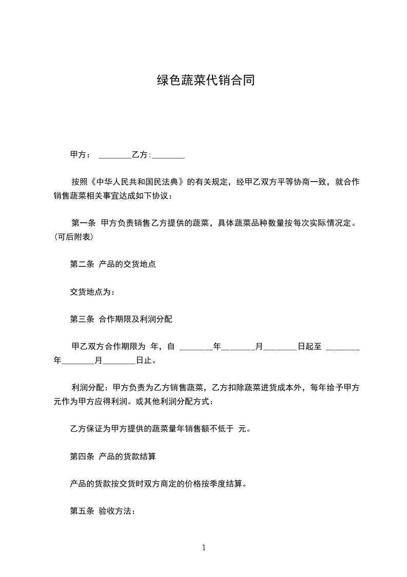 1.甲方对乙方交售的蔬菜必须及时验收,及时承付菜款,最迟不超过__________________小时(天)。(根据不同品种规定验收期限)