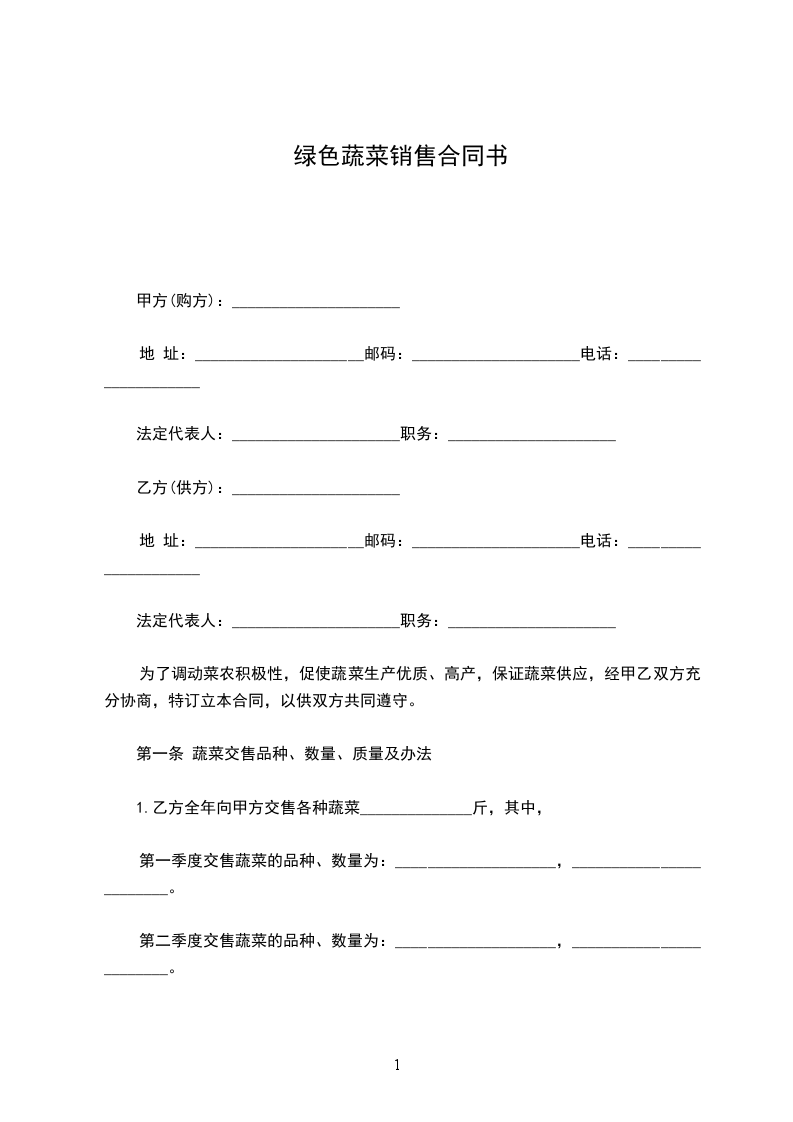 为了调动菜农积极性,促使蔬菜生产优质、高产,保证蔬菜供应,经甲乙双方充分协商,特订立本合同,以供双方共同遵守。