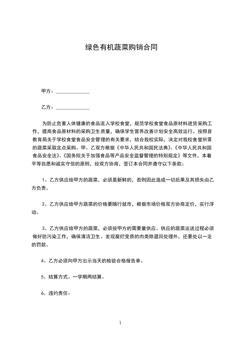 (本合同自甲乙双方签字之日起生效,甲乙双方任何一方不得擅自修改或解除合同,如双方代表人发生变更,不得变更合同。本合同内如有未尽事宜,必须由甲乙双方共同协商,作出补充规定,补充规定与本合同具有同等效力。合同期满,甲乙双方可根据对下一年蔬菜供求的预测,重新签订蔬菜订购合同。)