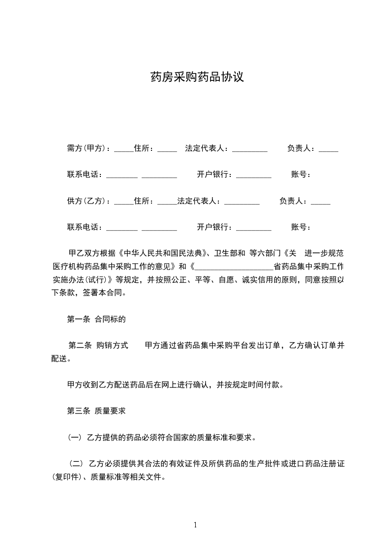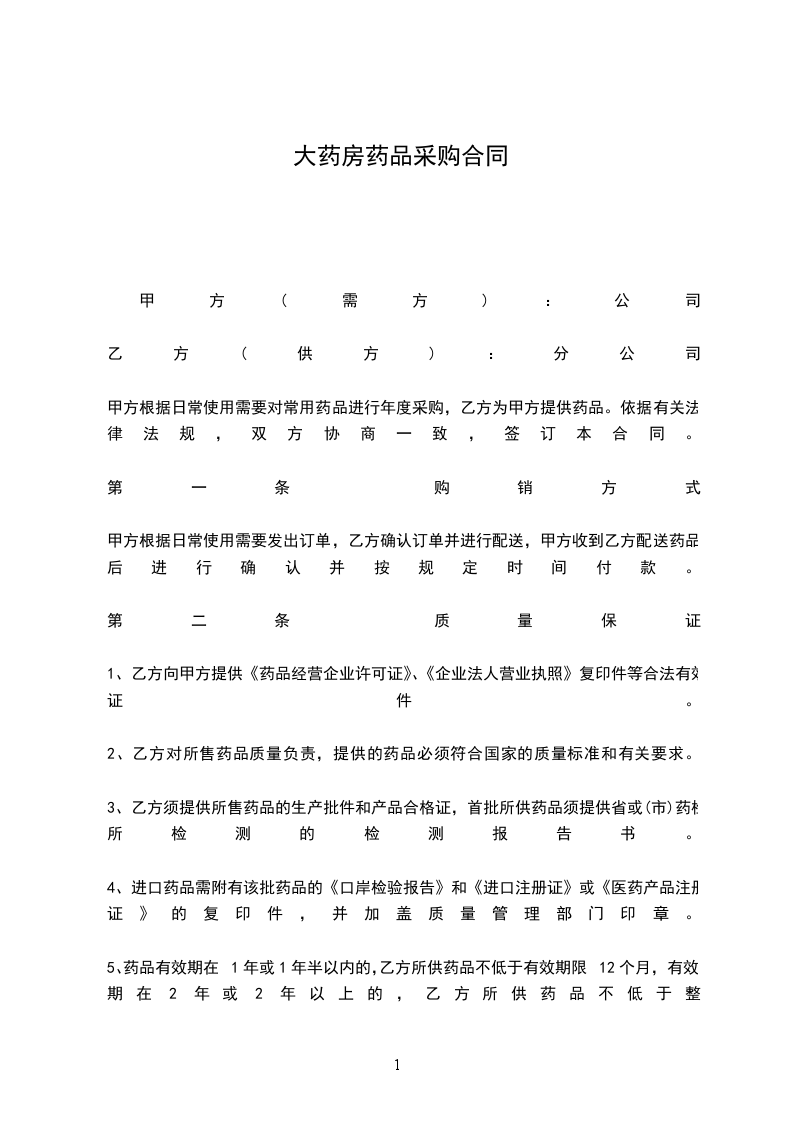 2、乙方对所售药品质量负责,提供的药品必须符合国家的质量标准和有关要求。