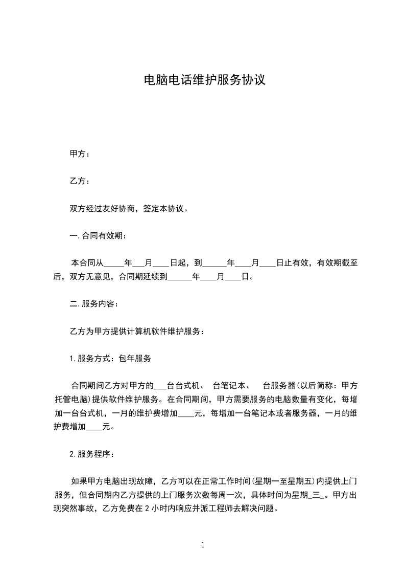 3.服务范围:计算机操作系统和电脑设备的维护,具体的服务内容见附件一。