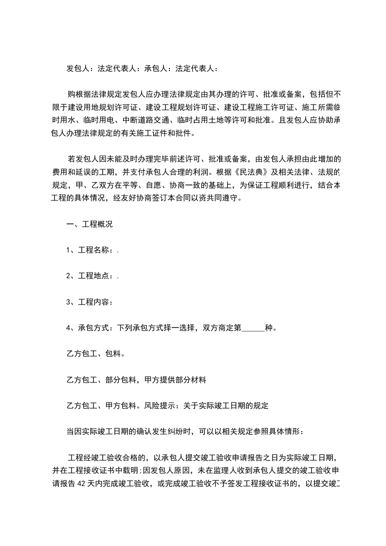 乙方包工、甲方包料。风险提示:关于实际竣工日期的规定