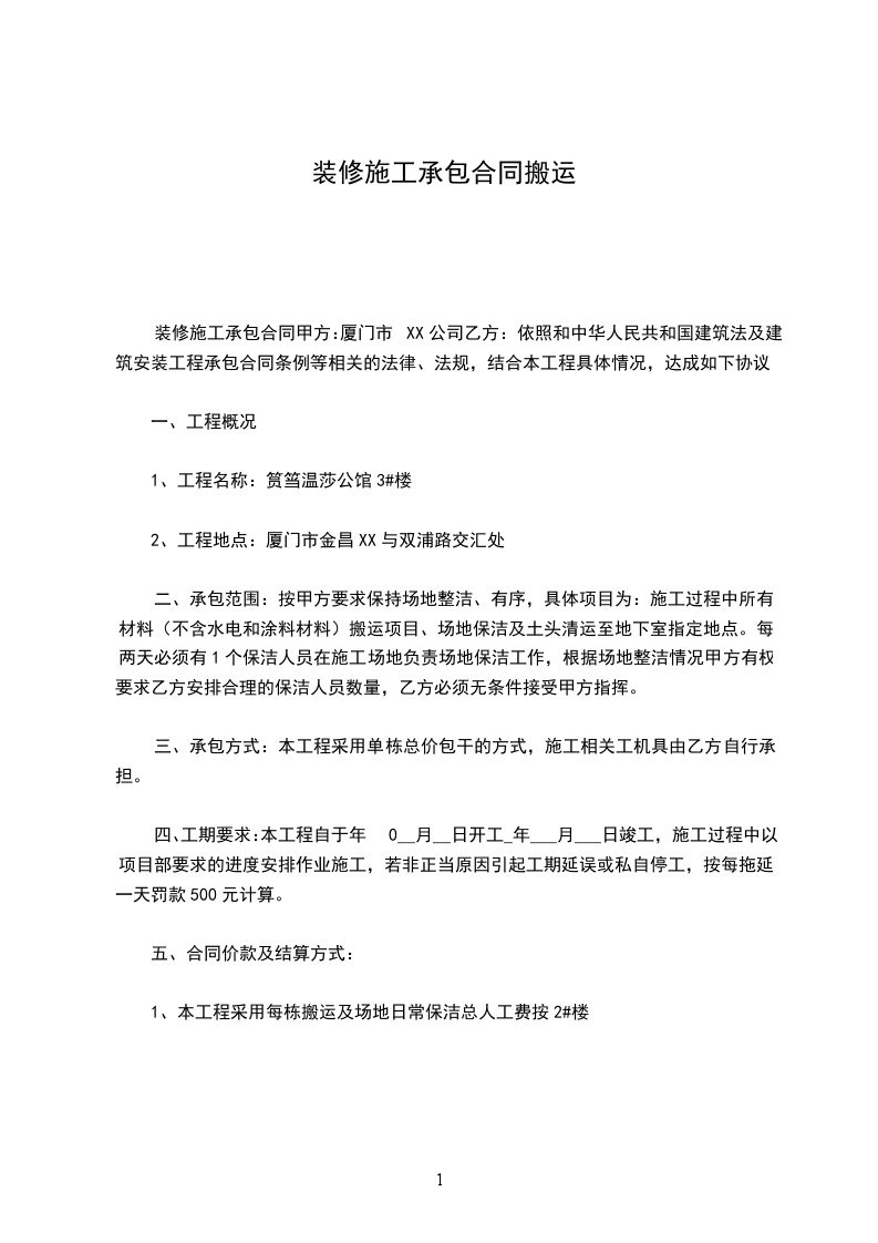 3、保护好原场所室内的家具和陈设,保证室内上、下水管道的畅通;做到安全生产,文明施工;