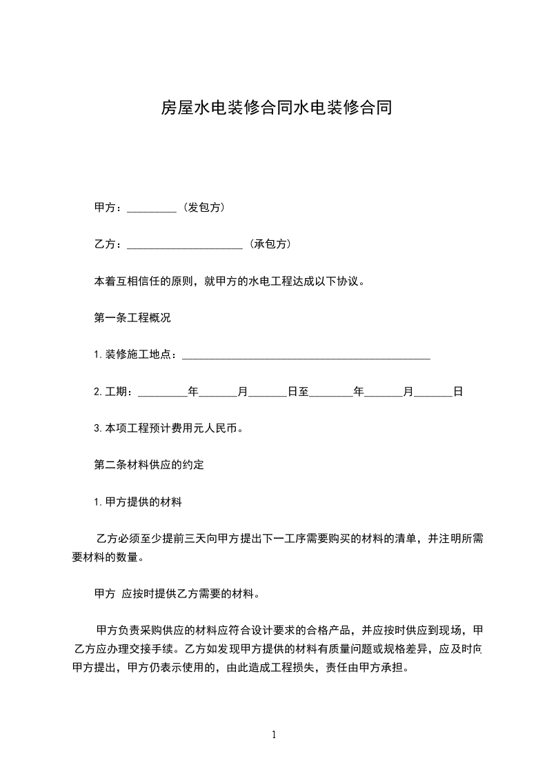 水电装修通用版合同