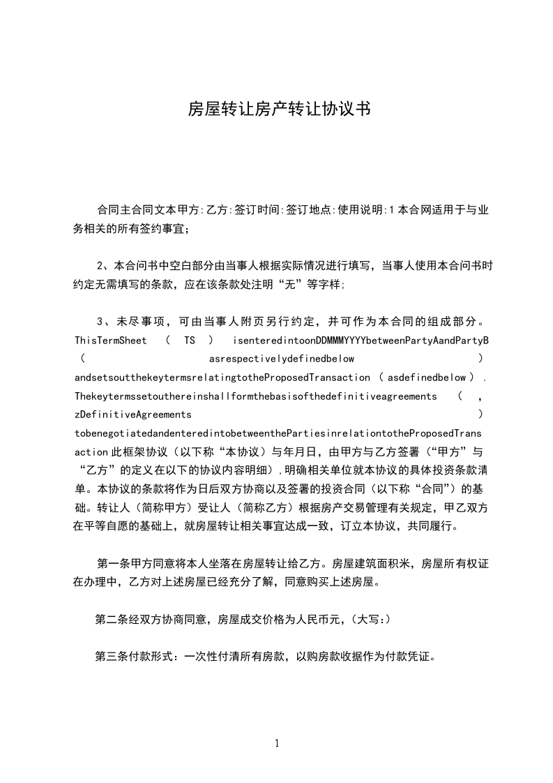 经甲、乙双方自愿协商达成一致,甲方将自己拥有的一套房屋转让给乙方,双方就房屋转让相关事宜达成以下协议条款,以资共同遵守: