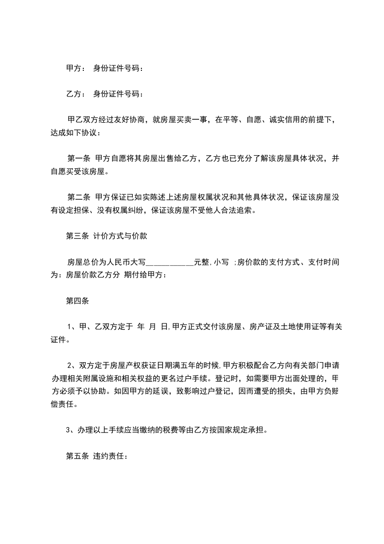 第八条签订合同之后,所售房屋室内设施不再变更。甲方保证在交易时该房屋没有产权纠纷,质量符合国家有关规定,符合房屋出售的法定条件。房屋交付使用之前的有关费用包括水、电、气、物业、有线等费用有甲方承担。由此引发的纠纷有甲方自行处理,于乙方无关。