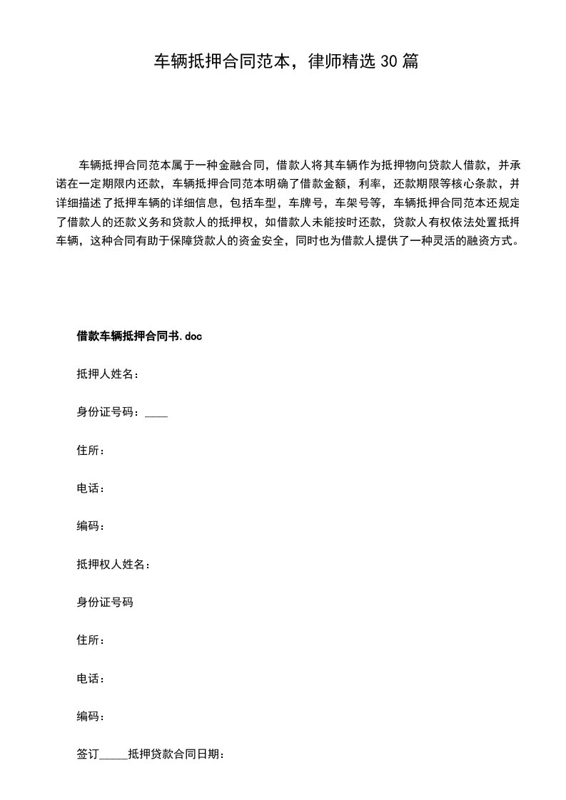 为确保乙方与甲方于________年____月____日签订的《借款合同》(编号:_________________)的履行,乙方愿用其所有的车辆提供抵押担保,甲方接受乙方的抵押,现经双方协商一致达成如下协议:
