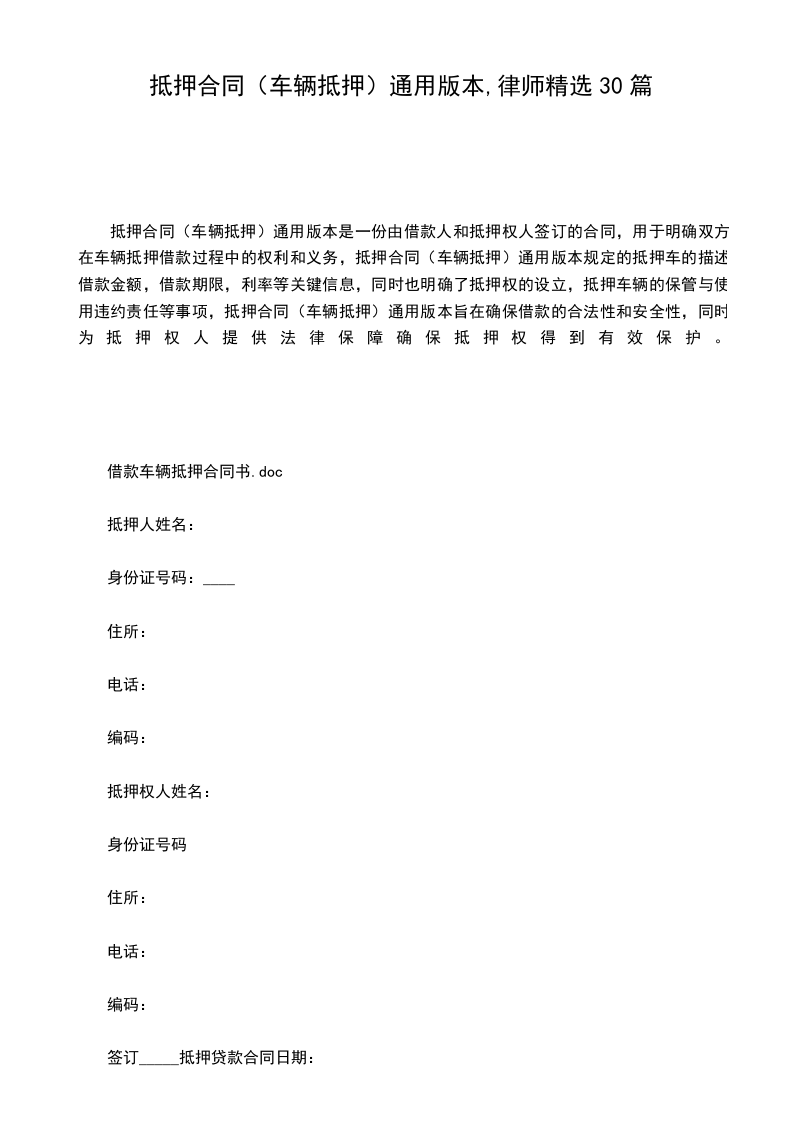 抵押合同(车辆抵押)通用版本是一份由借款人和抵押权人签订的合同,用于明确双方在车辆抵押借款过程中的权利和义务,抵押合同(车辆抵押)通用版本规定的抵押车的描述借款金额,借款期限,利率等关键信息,同时也明确了抵押权的设立,抵押车辆的保管与使用违约责任等事项,抵押合同(车辆抵押)通用版本旨在确保借款的合法性和安全性,同时为抵押权人提供法律保障确保抵押权得到有效保护。