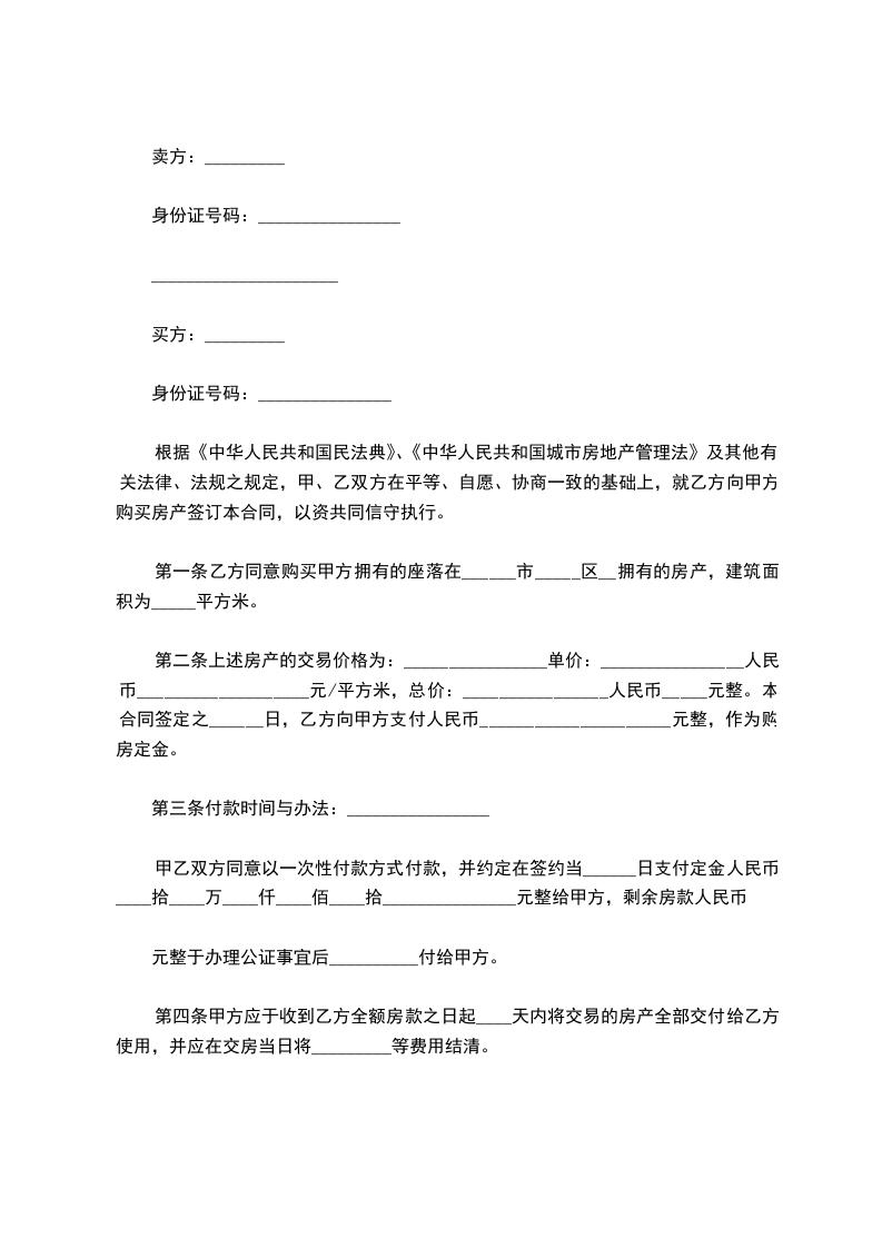 第一条乙方同意购买甲方拥有的座落在______市_____区__拥有的房产,建筑面积为_____平方米。