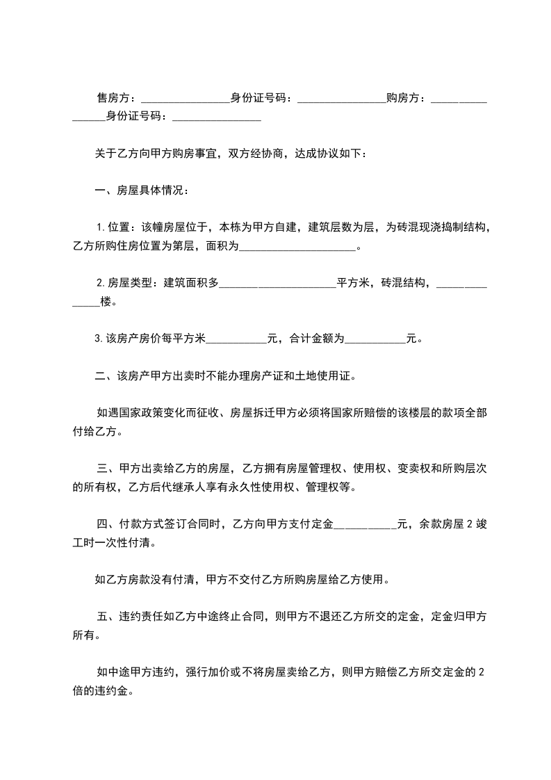 售房方:________________身份证号码:________________购房方:________________身份证号码:________________