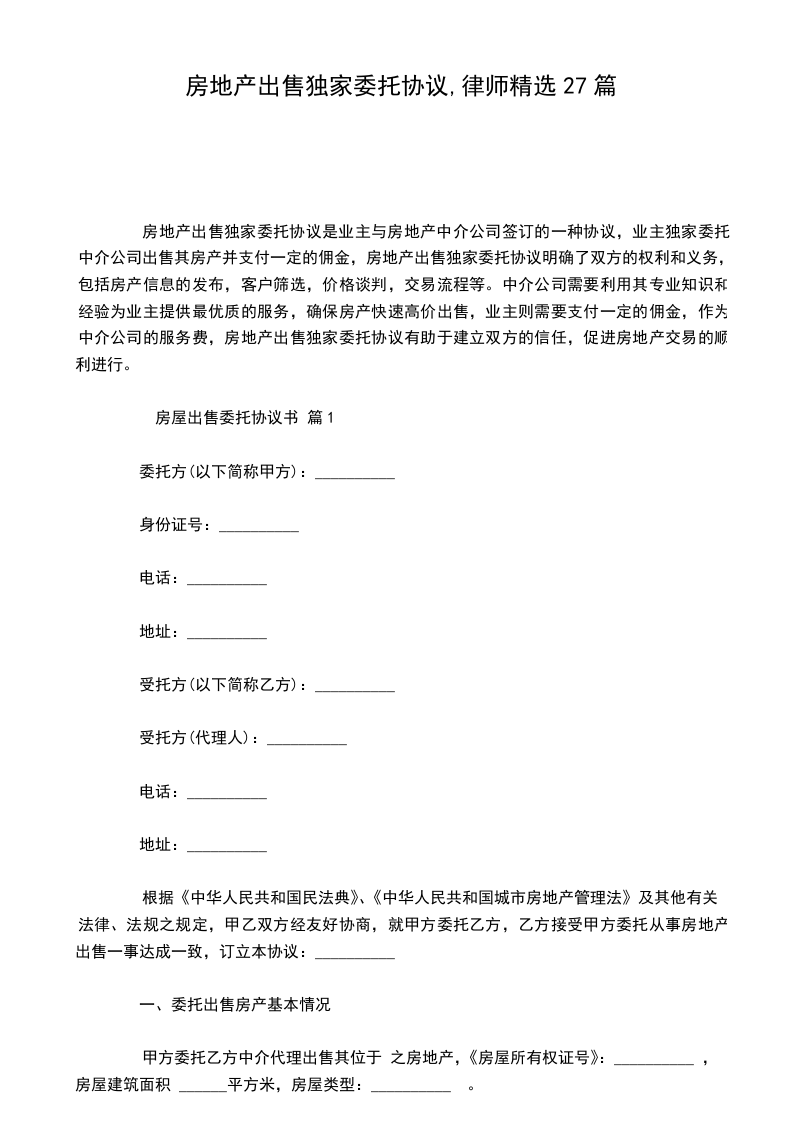房屋出售委托协议书 篇27