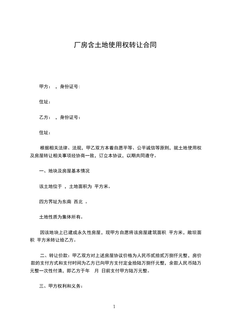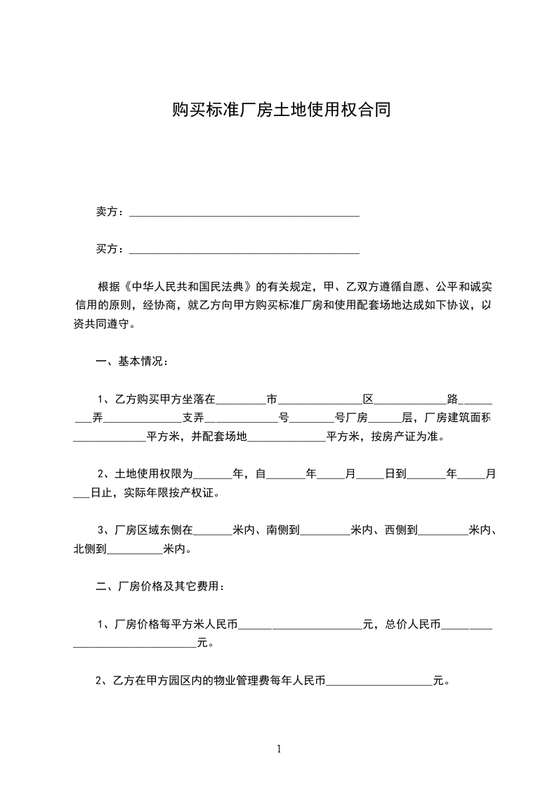 乙方购买甲方所有的位于厂房及土地使用权,土地转让面积以土地使用权证载明的面积为准,土地权属证号为:厂房暂无产权证。。