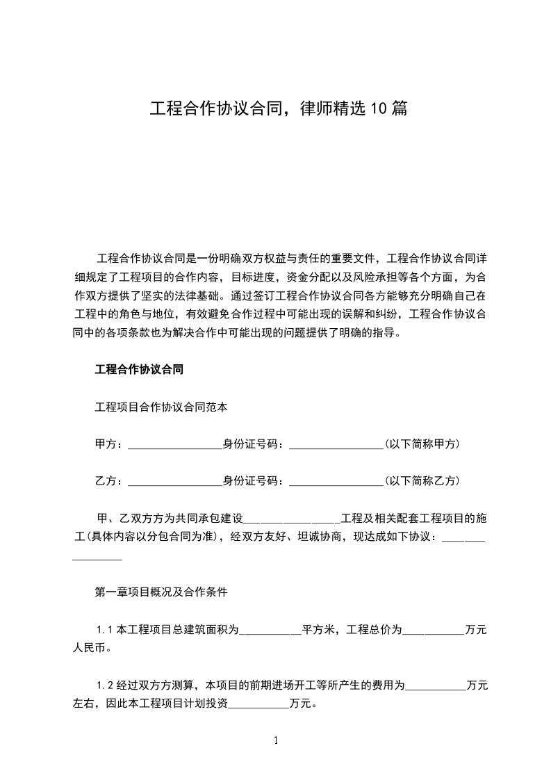工程项目合作协议合同范本