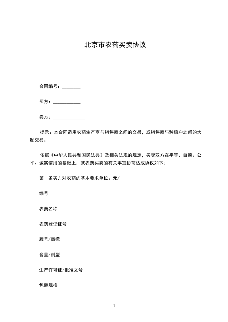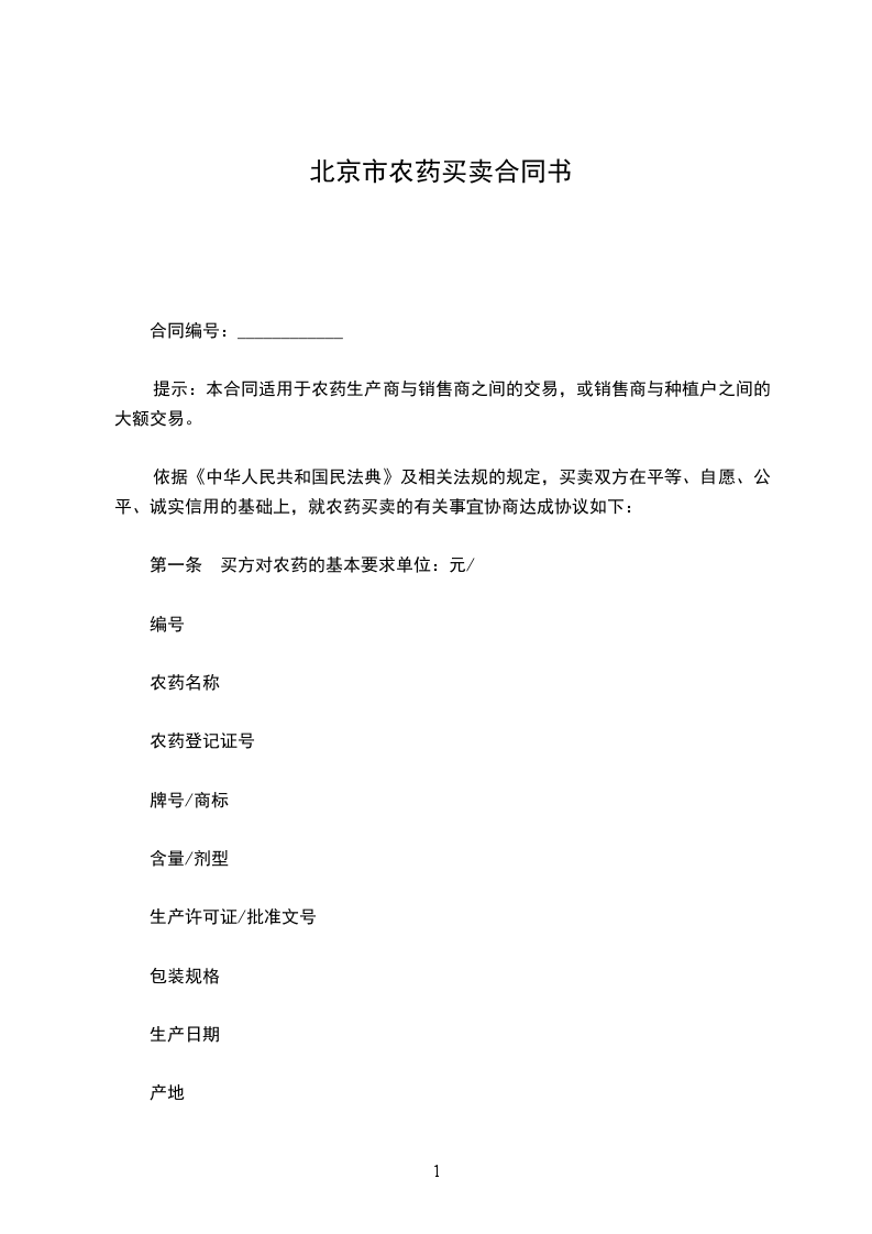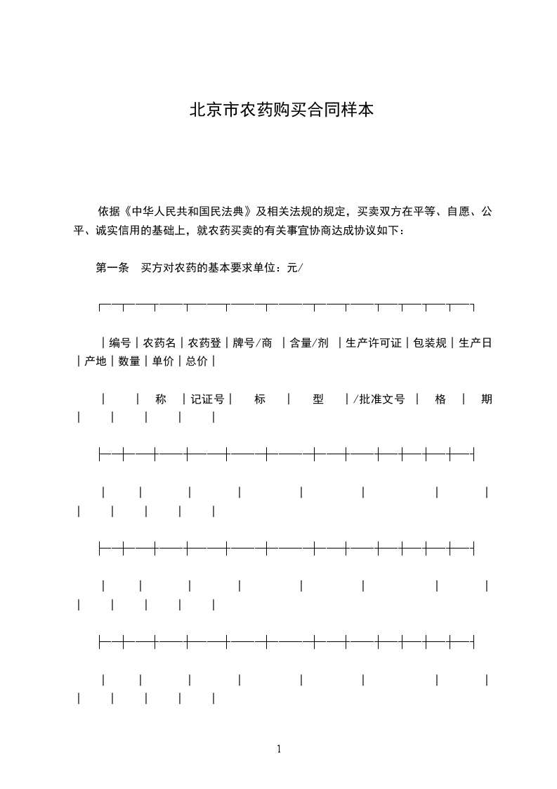 依据《中华人民共和国民法典》及相关法规的规定,买卖双方在平等、自愿、公平、诚实信用的基础上,就农药买卖的有关事宜协商达成协议如下: