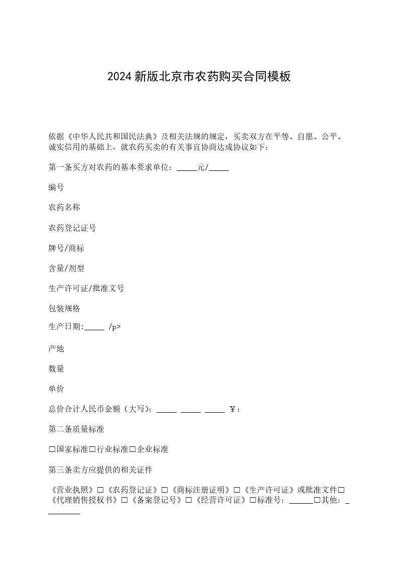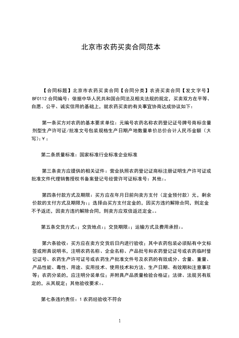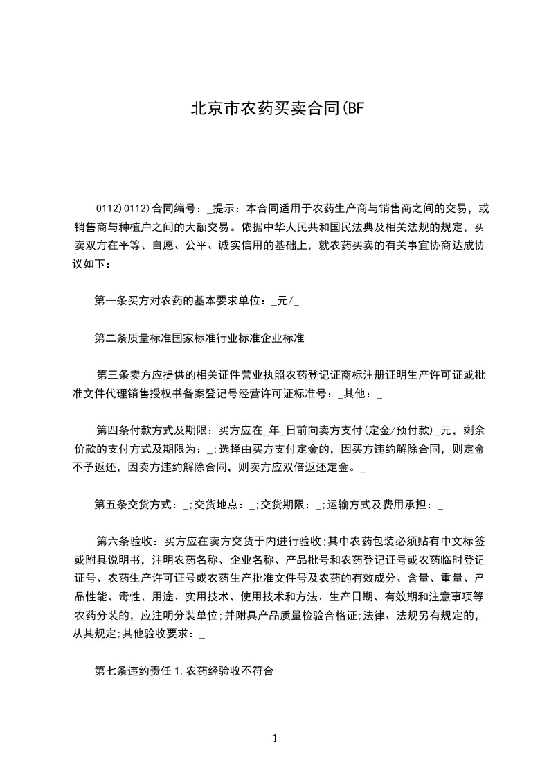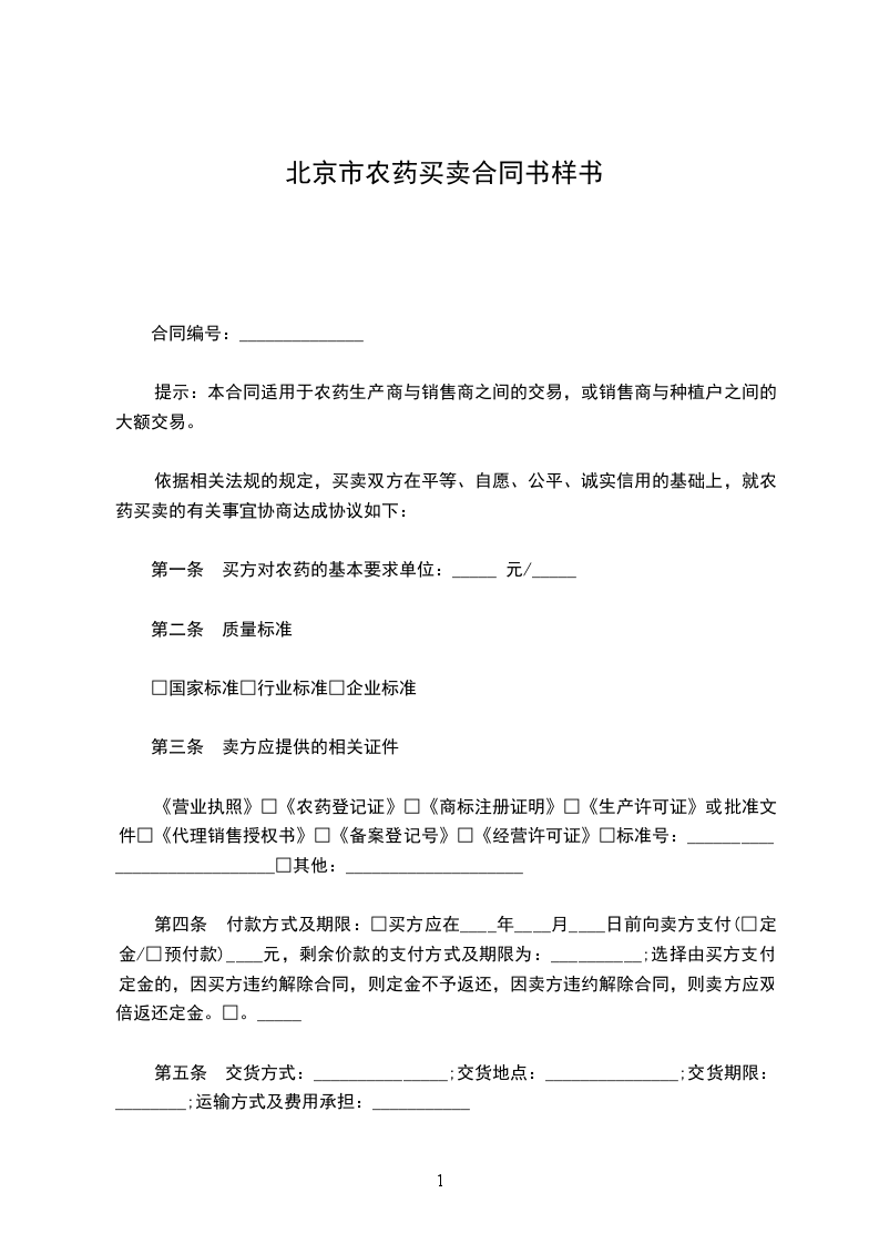 依据《中华人民共和国民法典》及相关法规的规定,买卖双方在平等、自愿、公平、诚实信用的基础上,就农药买卖的有关事宜协商达成协议如下: