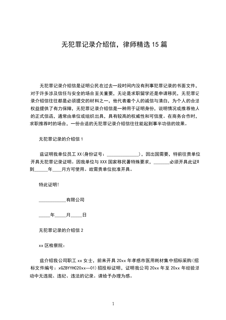 无犯罪记录介绍信是证明公民在过去一段时间内没有刑事犯罪记录的书面文件,对于许多涉及信任与安全的场合至关重要,无论是求职留学还是申请移民,无犯罪记录介绍信往往都是必须提交的材料之一,他代表着个人的诚信与清白,为个人的合法权益提供了有力保障,无犯罪记录介绍信是一种用于证明身份,说明情况或推荐他人的正式信函,通常由单位或组织出具,具有较高的权威性和可信度。在商务合作时,求职推荐时的场合,一份合适的无犯罪记录介绍信往往能起到事半功倍的效果。