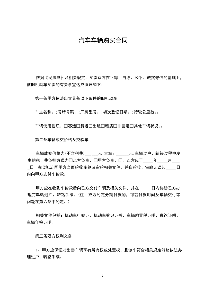 买卖双方依据《民法典》及其他有关法律法规的规定,本着自愿、平等、互惠互利、诚实信用的原则,经充分友好协商,就买卖汽车的有关事项,订立如下合同条款,以资共同恪守履行。