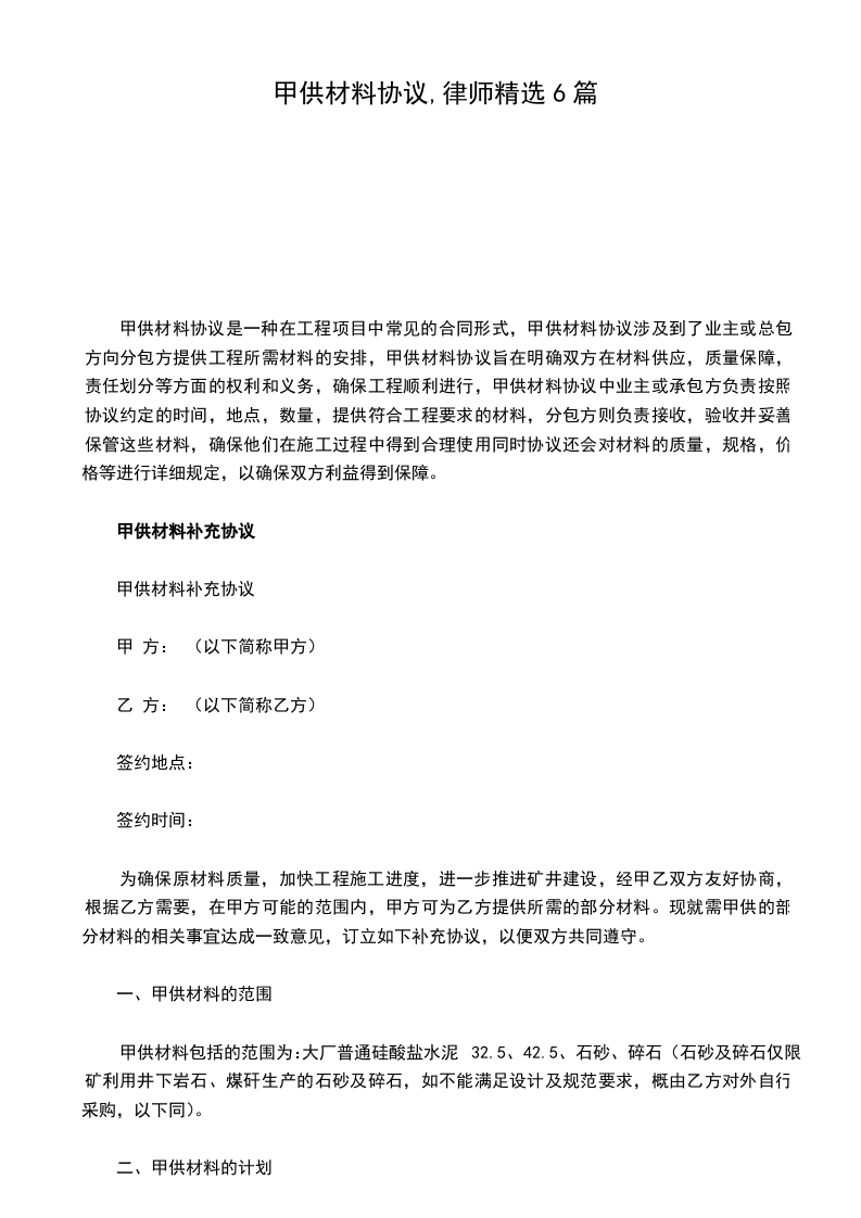 甲供材料补充协议