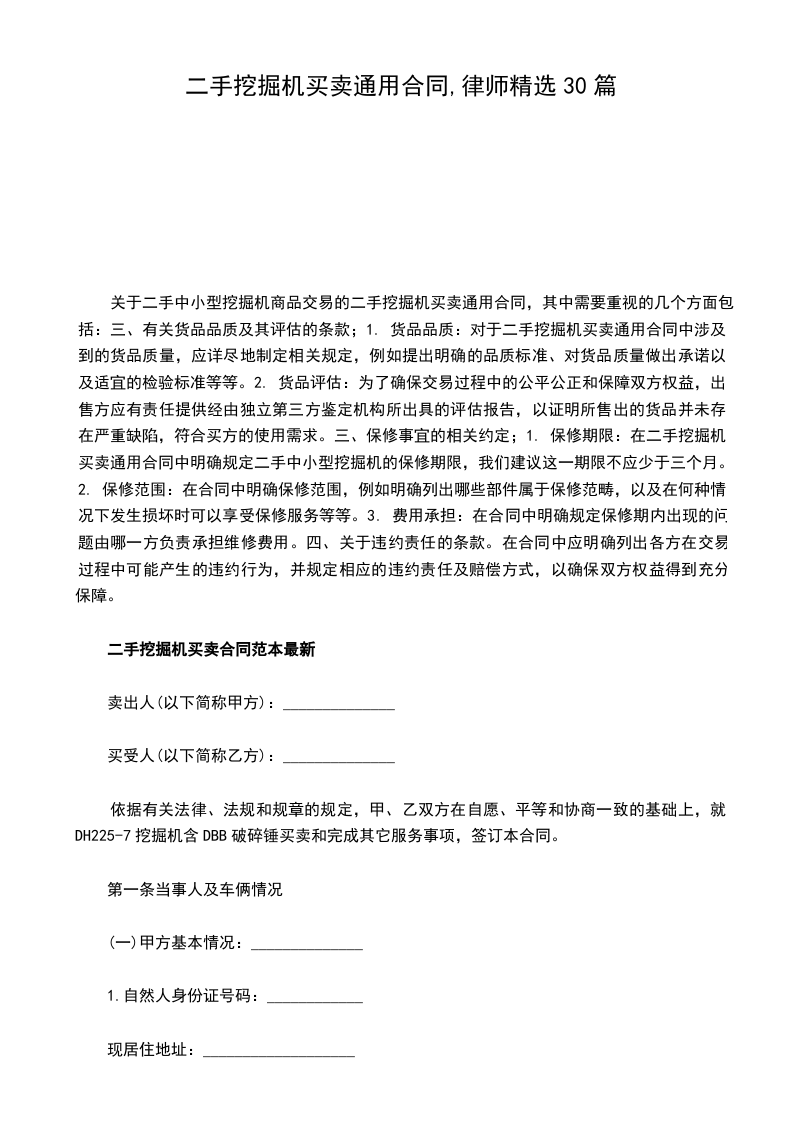 挖掘机是经济投入大的固定资产,为提高其使用年限获得更大的经济效益,设备必须做到定人、定机、定岗位,明确职责。必须调岗时,应进行设备交底。!【一】卖出人(以下简称甲方):买受人(以下简称乙方):依据有关法律、法规和规章的规定,甲、乙双方在自愿、平等和协商一致的基础上,就DH225-7挖掘机含DBB破碎锤买卖和完成其它服务事项,签订本合同。