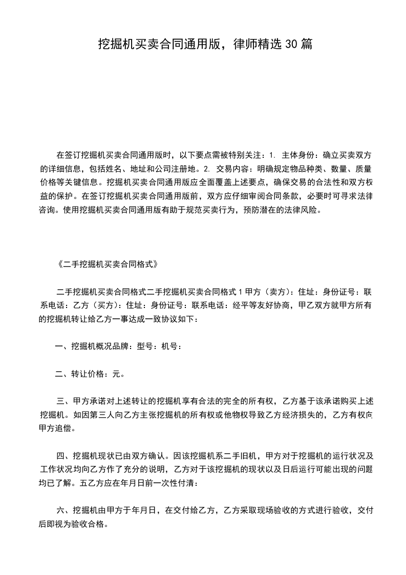 挖机买卖合同通用版,是工程机械交易中不可或缺的重要文件。它详细规定了买卖双方在挖机交易过程中的各项权利和义务,为双方提供了明确、具体的交易指南。挖机买卖合同通用版不仅涵盖了挖机的基本信息、交易价格、付款方式等核心内容,还明确了交付方式、质量保证、违约责任等关键条款,为交易的顺利进行提供了有力保障。通过签订挖机买卖合同通用版,买卖双方可以建立起稳定、互信的合作关系,共同推动工程机械市场的健康发展。