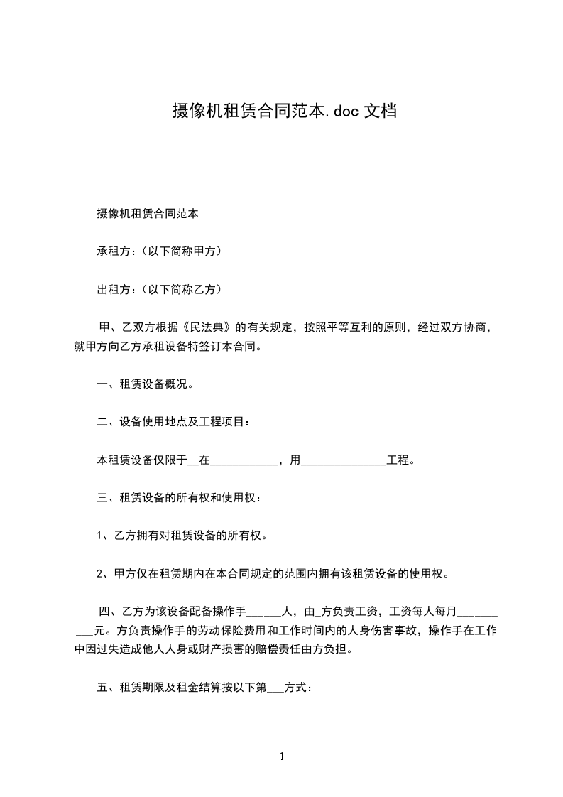 甲、乙双方根据《中华人民共和国民法典》的有关规定,按照平等互利的原则,经过双方协商,就甲方向乙方承租设备特签订本合同。