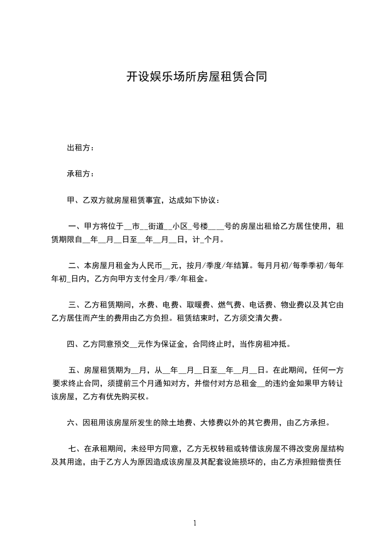 一、甲方将位于__市__街道__小区_号楼____号的房屋出租给乙方居住使用,租赁期限自__年__月__日至__年__月__日,计_个月。