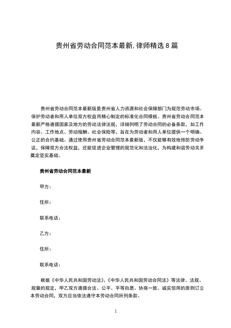 构思新颖,品质一流,适合各个领域,谢X采纳劳动合同甲方(用人单位)名称:地址:电话:法定代表人(主要负责人):乙方(劳动者)姓名:户籍所在地:现居住地址:性别:出生年月:民族:文化程度:电话:身份证号码(或其他有效证件号码):1构思新颖,品质一流,适合各个领域,谢X采纳贵州省劳动和社会保障厅印制据中华人民共和国劳动法、中华人民共和国劳动合同法等法律、法规、规章规定,甲乙双方遵循合法、公平、平等自愿、协商一致、诚实信用的原则订立本劳动合同,双方应当依法遵守本劳动合同所列条款。