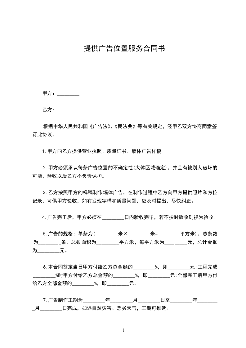 1.1乙方于本合同期内提供广告位置。