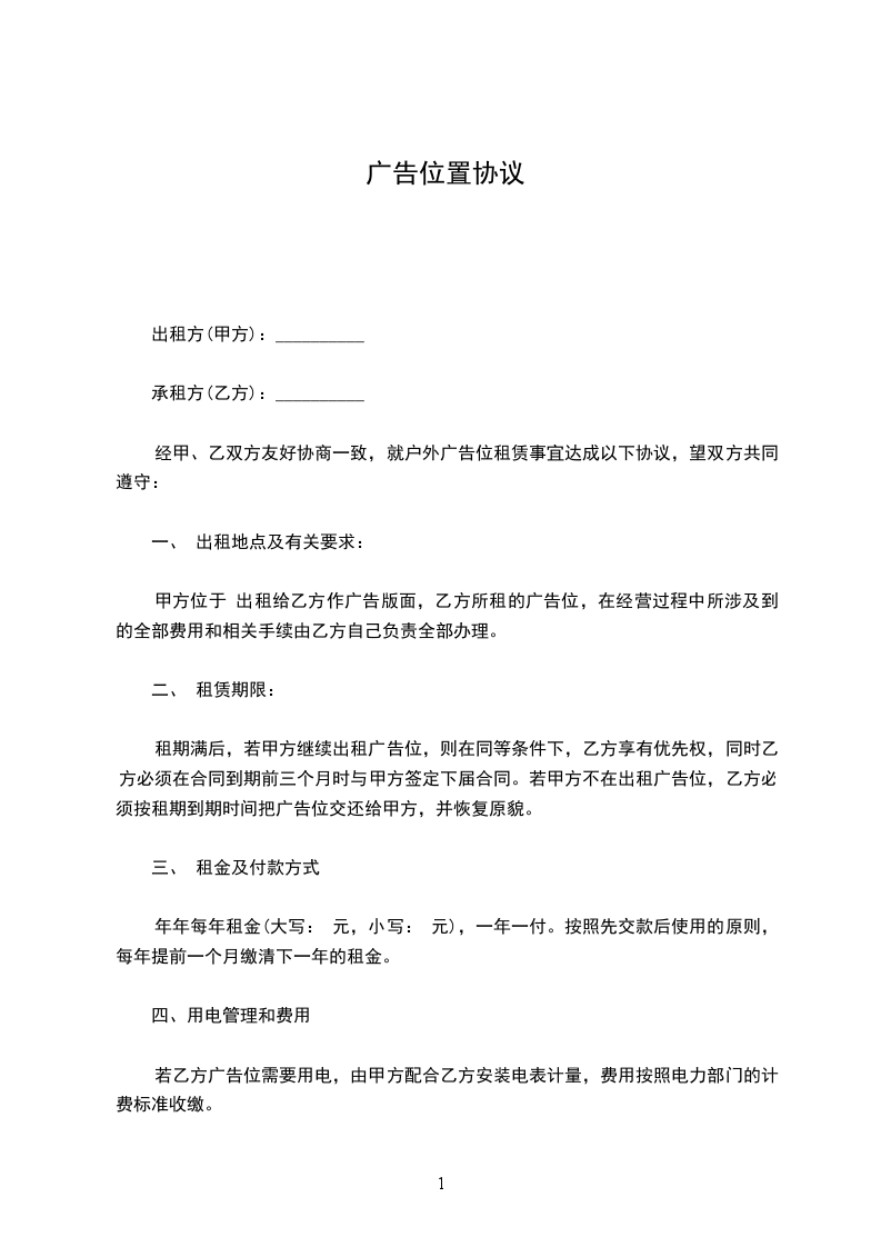 1.2广告的位置:具体位置由乙方指定。