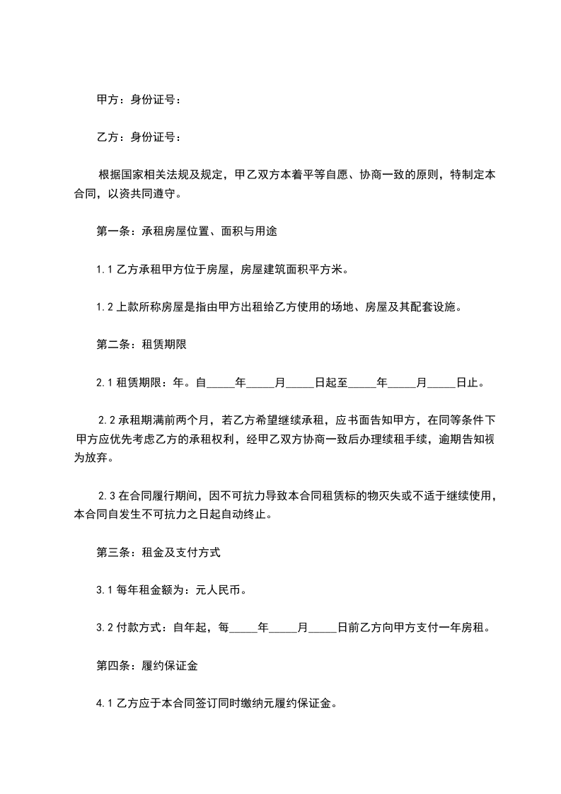 1.1乙方承租甲方位于房屋,房屋建筑面积平方米。