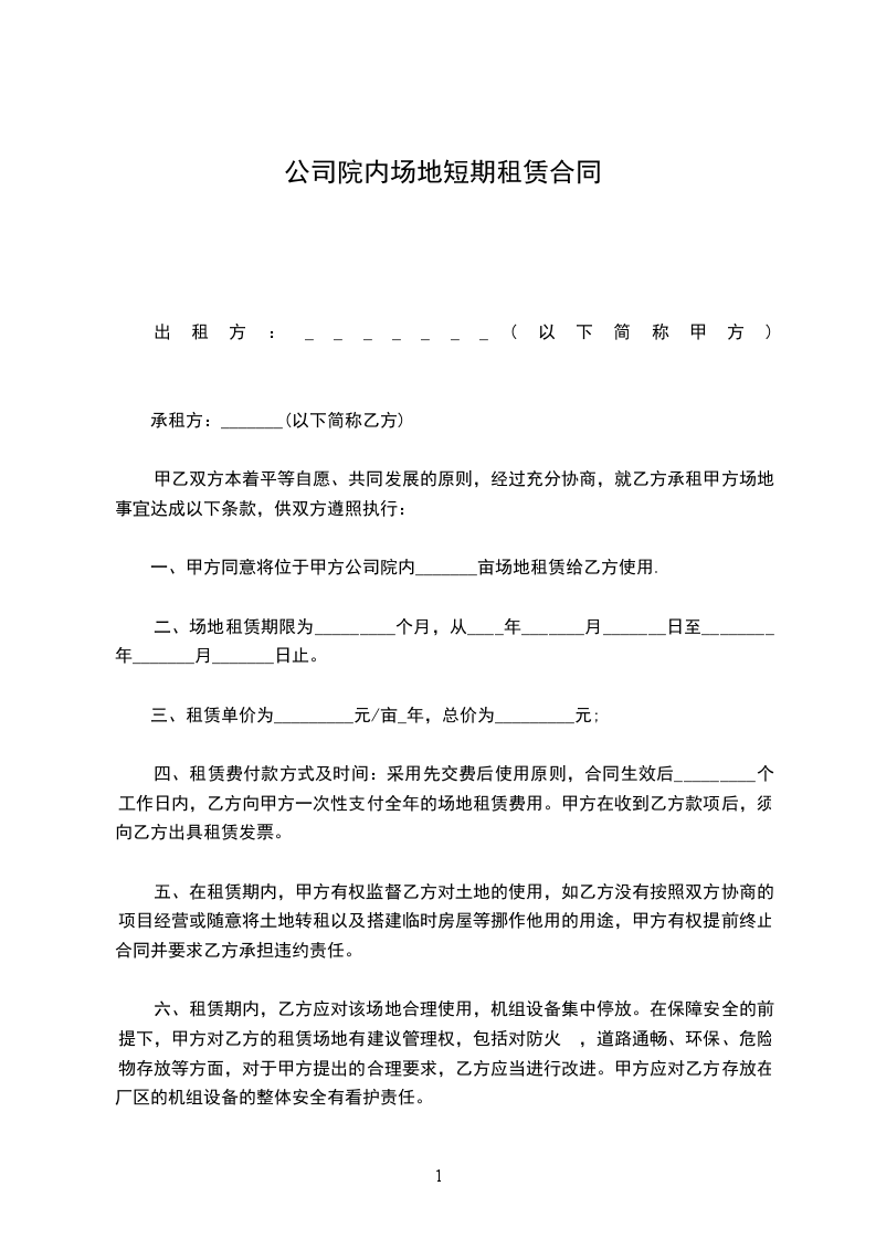 1.2上款所称房屋是指由甲方出租给乙方使用的场地、房屋及其配套设施。