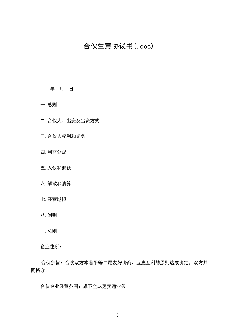 第一条 合伙宗旨