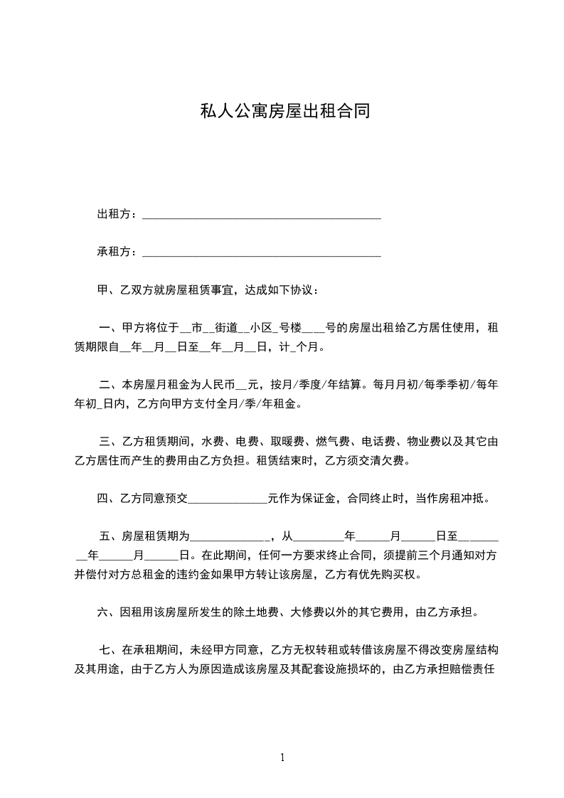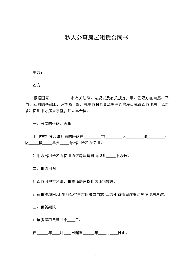 一、甲方将位于__市__街道__小区_号楼____号的房屋出租给乙方居住使用,租赁期限自__年__月__日至__年__月__日,计_个月。