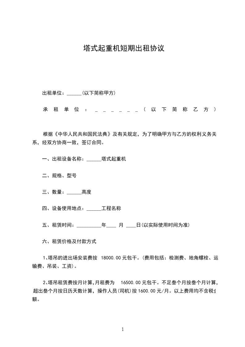 1)甲方租用丙方的塔吊,交付给乙方使用。甲方负责设备基础施工及处理,提供进出场道路和安拆作业场地。