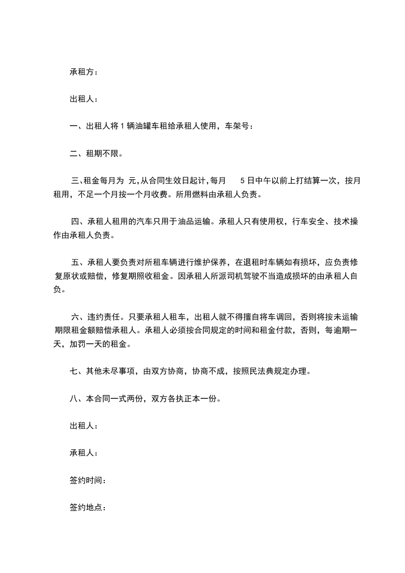 一、出租人将1辆油罐车租给承租人使用,车架号:
