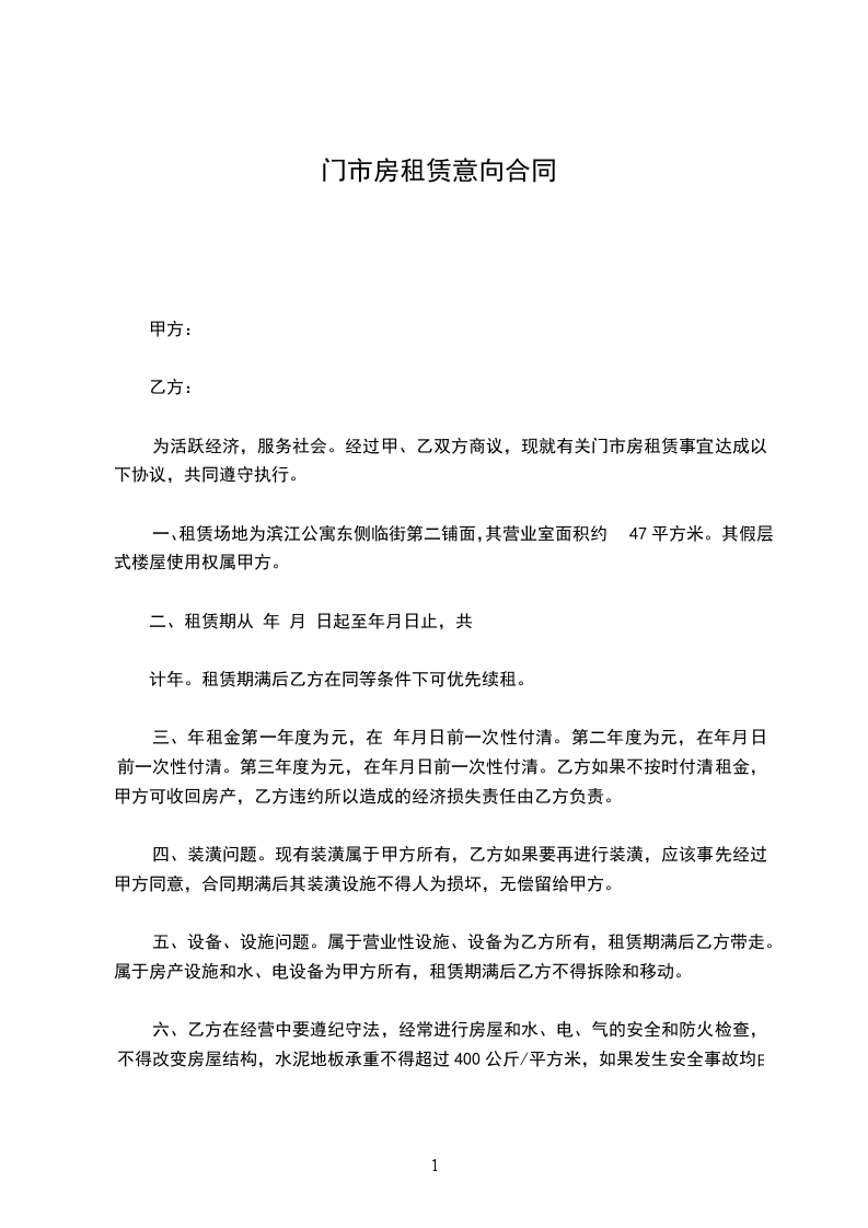 门市房位置:___号门市