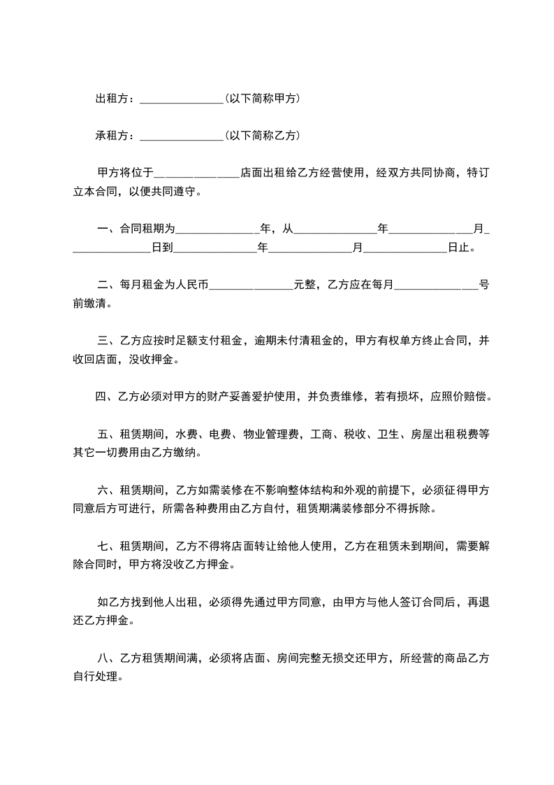 6、租赁期间乙方要注意防火,防盗,保卫安全,以及门前三包,如乙方原因引发火灾,盗窃,造成损失,由乙方负责赔偿全部的经济损失。