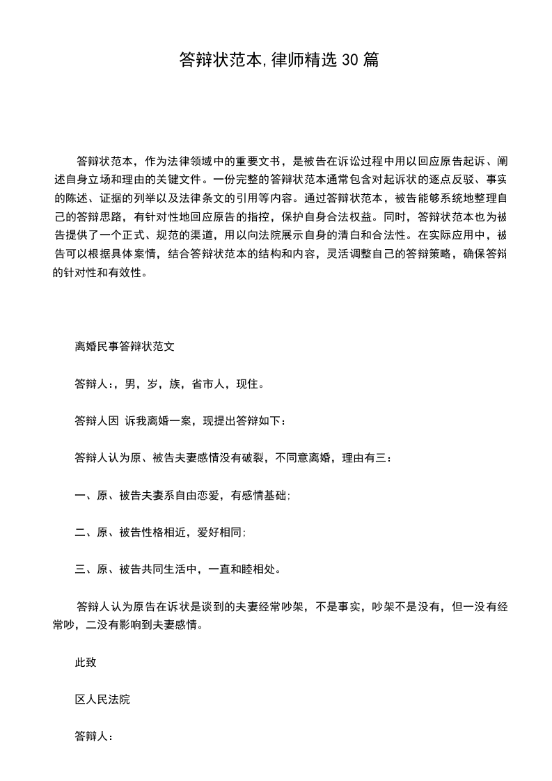 答辩状范本在法律实务中扮演着举足轻重的角色,它不仅是被告答辩的重要工具,也是法院审理案件的重要依据。一份精心撰写的答辩状范本,能够清晰地呈现被告的答辩观点和理由,有助于法院全面了解案情,作出公正的判决。此外,答辩状范本的使用还有助于提升被告的法律素养和答辩能力,使其更好地适应法律诉讼的复杂环境。因此,被告在面临诉讼时,应充分重视答辩状范本的撰写,认真研究相关法律规定和案例,确保答辩的合法性和有效性。同时,我们也应认识到,答辩状范本只是法律实务中的一个方面,被告在诉讼过程中还需注意其他诸多事项,如证据的收集与保存、出庭应诉等,以确保自身的合法权益得到充分保障。