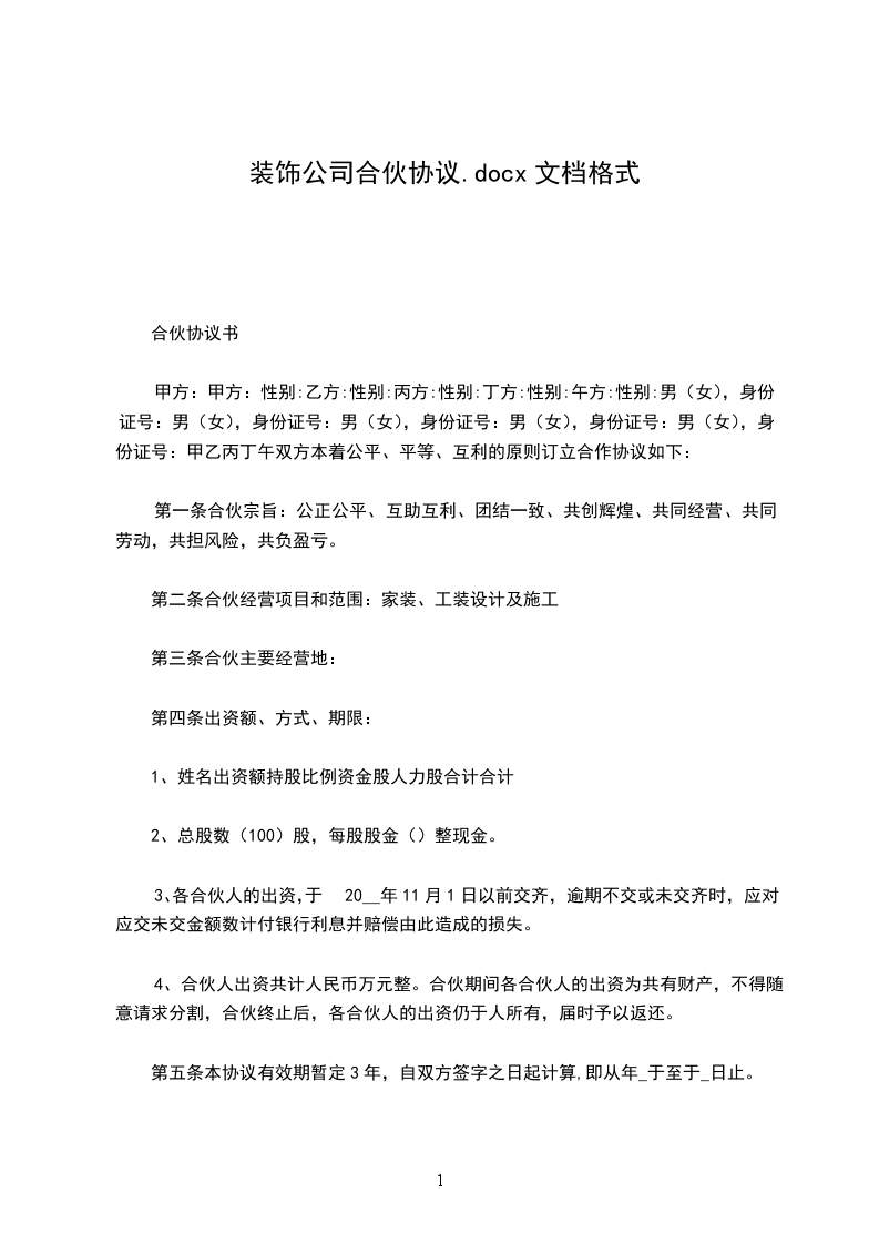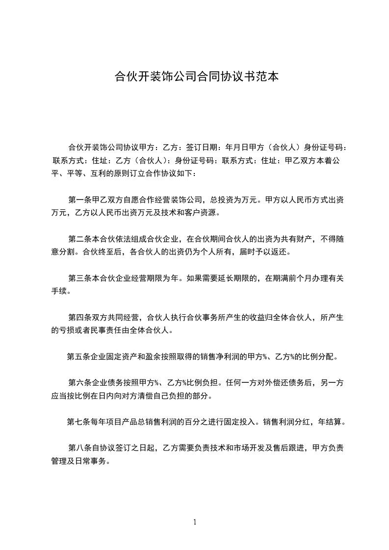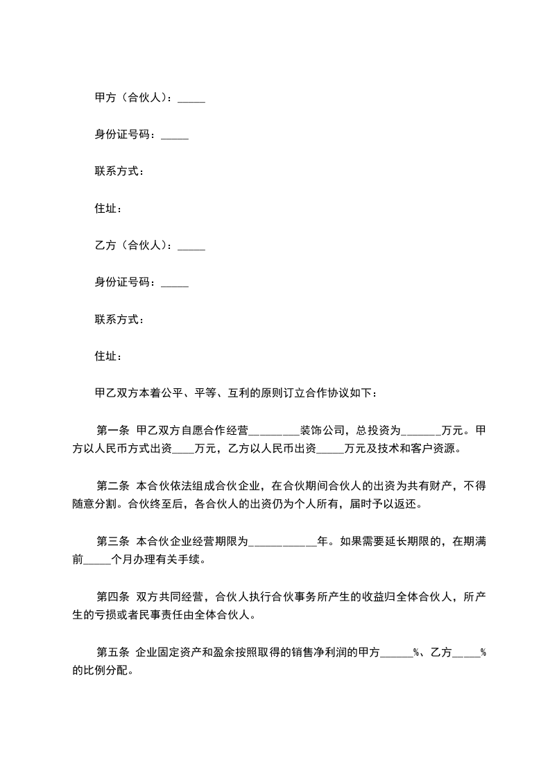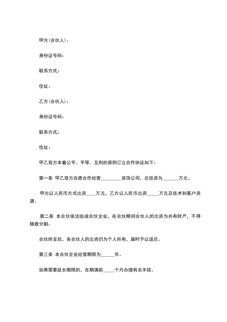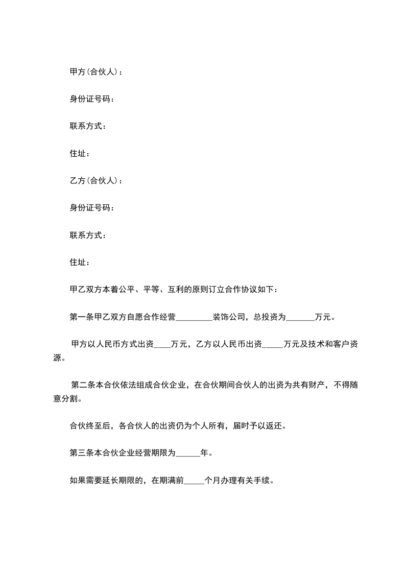装饰公司合伙合同范文一