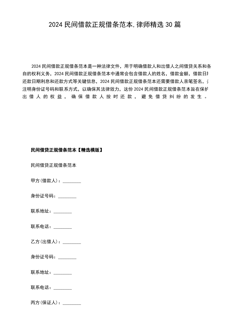 第一条、借款金额:甲方出借给乙方人民币_________________元(小写_________________元)