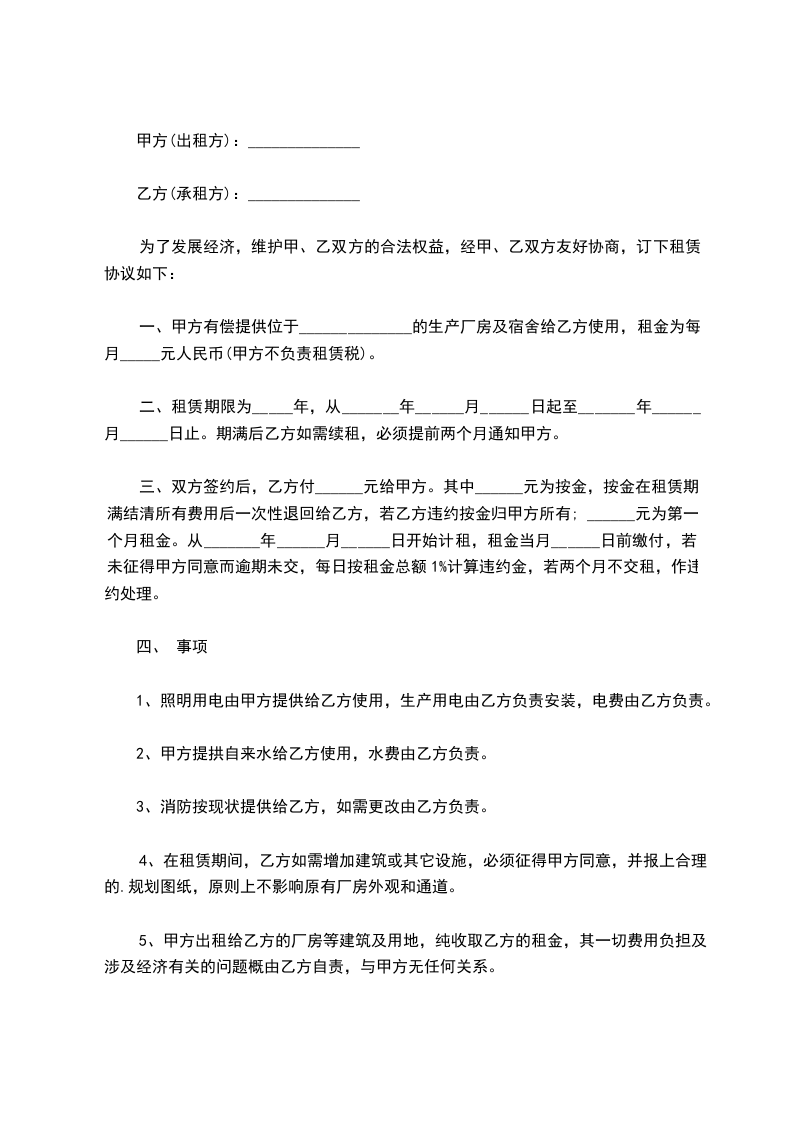 六、租赁期间,任何一方提出终止协议,需提前1个月书面通知对方,经双方协商后签订终止协议。